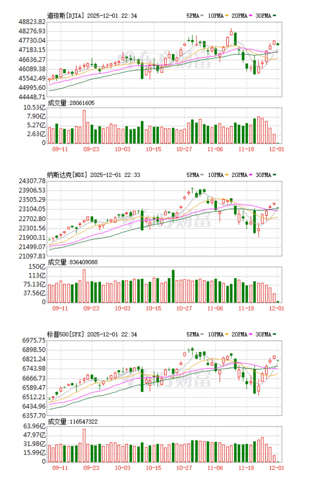 美股12月开局不利,因加密货币再遭抛售以及日本央行的鹰派言论令市场情绪承压。三大指数集体低开,道琼斯指数跌0.59%,标普500指数跌0.64%,纳斯达克综合指数跌0.85%。