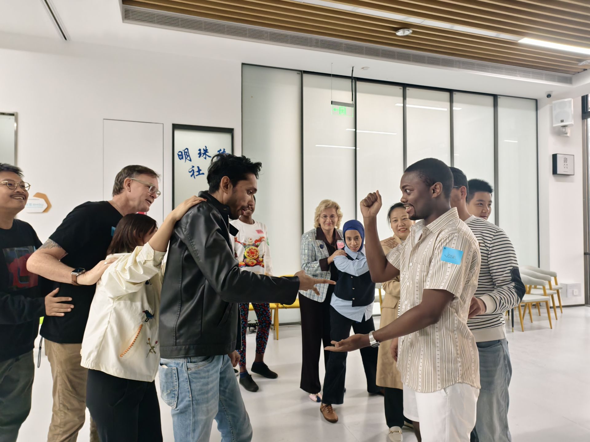 活动设置了交流互动环节。志愿者们通过破冰游戏相互认识,并就志愿服务经历、跨文化体验等话题进行分享。现场还播放了音乐,增添了友好交流的氛围。