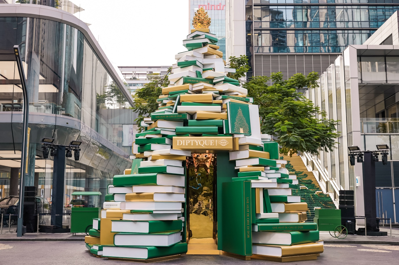 本次合作以童话为核心线索,复刻了Diptyque打造的奇幻异想世界:巴黎圣日尔曼大道书店的晨光中,小猫阿奇轻拨香氛松果的经典场景被实景还原,金色光晕与冷杉香气交织,将城市街景化作森林秘境。活动呼应Diptyque三位创始人精神,邀请巴黎书商及插画师Vincent Puente、作家诗人Victor Pouchet与艺术家Inès Mélia联合创作全新冬日限量系列,让品牌经典元素与冬日诗意完美融合。