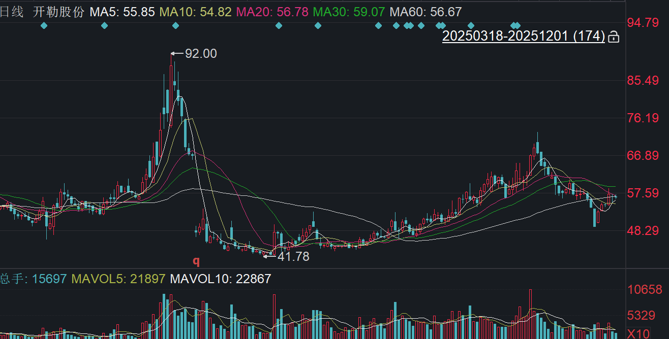 二级市场上,截至12月1日收盘,开勒股份下跌0.48%报56.34元/股,总市值约50.84亿元,今年来公司股价累计上涨超四成。