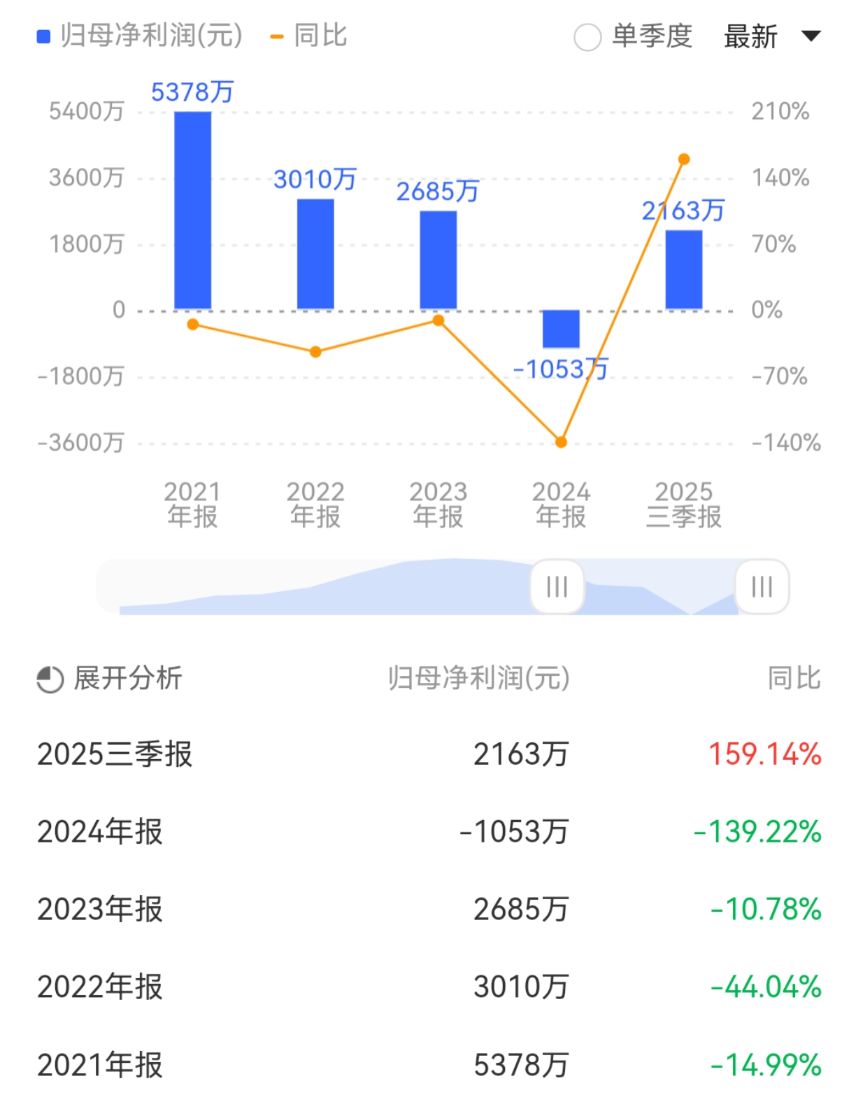 2025年前三季度,公司营业收入为2.38亿元,同比下降14.32%;归母净利润为2163万元,同比上升159.14%;扣非归母净利润为1118万元,同比上升2067.24%