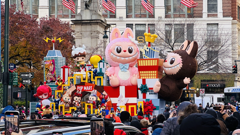 本次行程的高潮是11月27日的梅西百货节日花车游行。作为一项延续百年的文化盛事,这场活动每年都能吸引数千万观众。今年,泡泡玛特首次受邀参与,并以“POP CITY友谊盛宴”为主题打造专属花车。