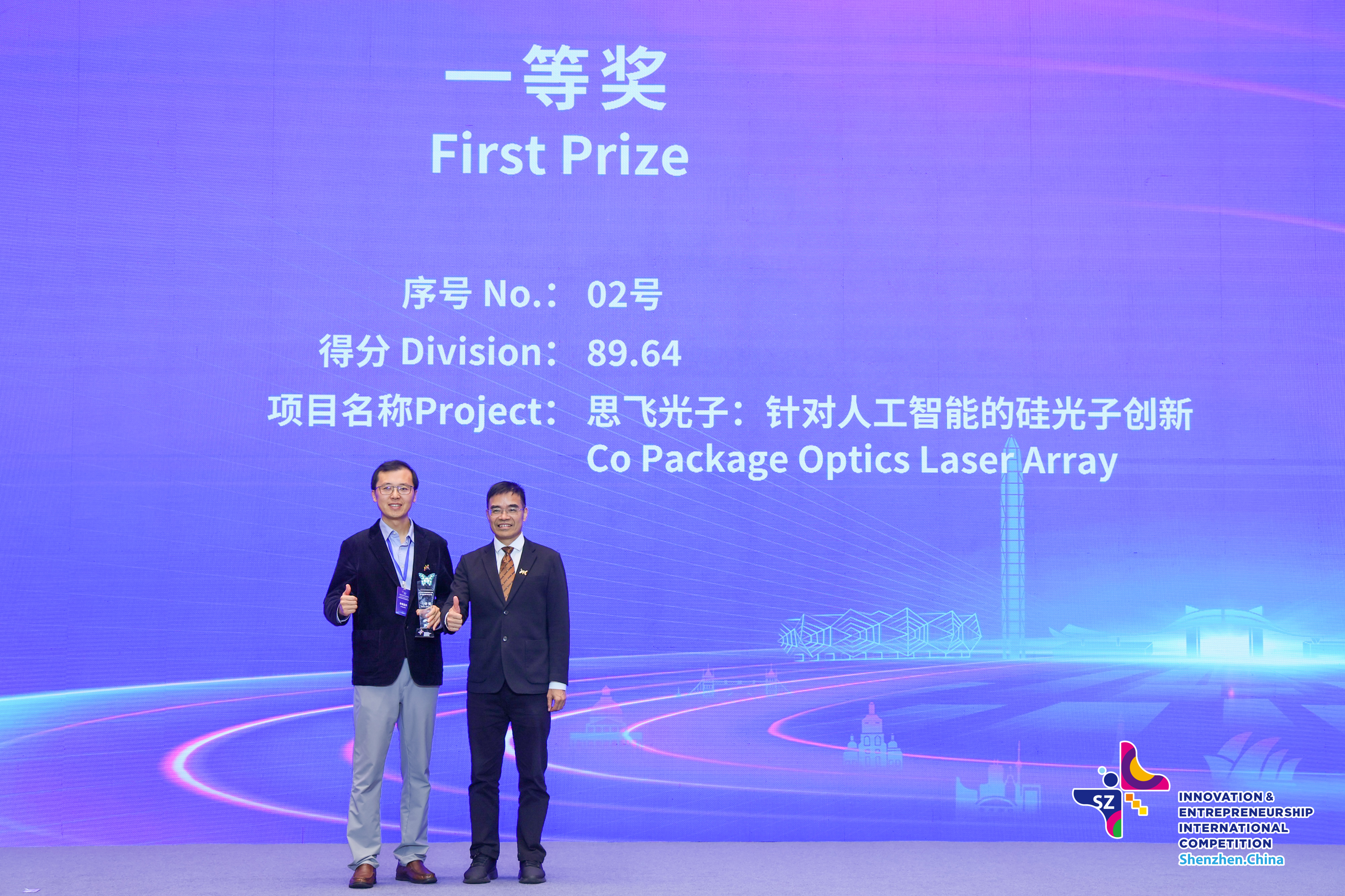 新一代电子信息赛道的“思飞光子:针对人工智能的硅光子创新”项目团队脱颖而出,荣获第一名。该项目旨在通过新一代光学器件技术,最大化发挥GPU的计算效能,从而间接缓解高端GPU的“卡脖子”问题,在效率上实现了百倍提升。