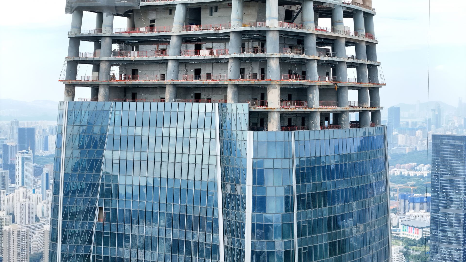 近日,深圳“罗湖之冠”城建梅园云投大厦项目幕墙安装突破300米高,标志着项目幕墙施工迈入超高层幕墙施工的重要阶段。