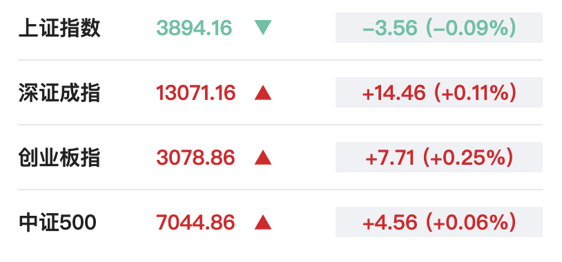 12月3日,三大指数走势分化。沪指低开0.09%,报3894.16点;深成指高开0.11%,报13071.16点;创业板指表现稍强,高开0.25%,报3078.86点;科创50指数则微跌0.2%,报1317.58点。