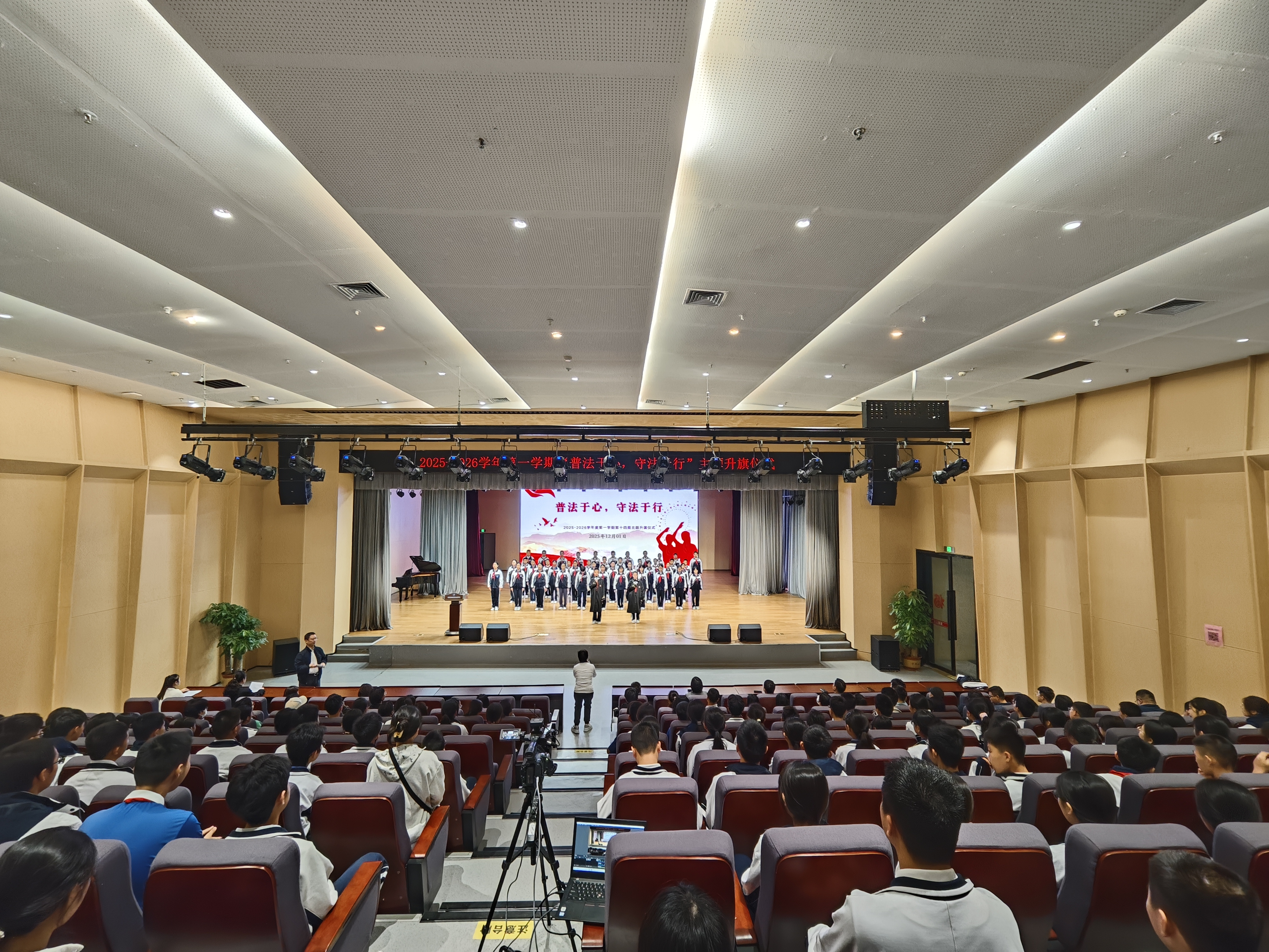 “国家通过普及理想教育、道德教育、文化教育、纪律和法制教育……加强社会主义精神文明的建设。”宪法晨读环节中,全体同学跟随领读老师,逐字逐句诵读宪法核心章节。