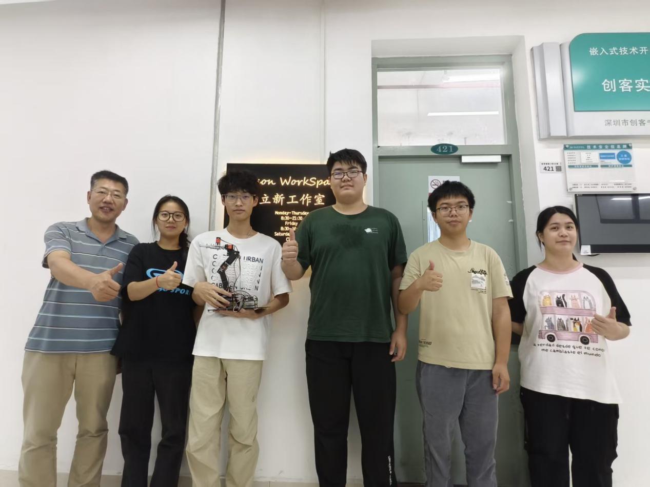 为突破瓶颈,他们主动申请加入学校嵌入式开发团队——立新工作室,而学校不仅敞开实验室大门,更配备了两位具有企业实战背景的资深指导老师——华为出身的陈老师深耕通信与电子电路前沿技术,持续为团队引入行业信息、共同攻克技术难题;具有发明专利和项目开发经验的夏老师,凭借自身多年一线实战经验,手把手指导团队撰写与申请专利文件,让技术成果顺利转化为知识产权,支撑团队长远发展。正是在学校实验室的日夜钻研中,团队的技术能力实现了质的飞跃。