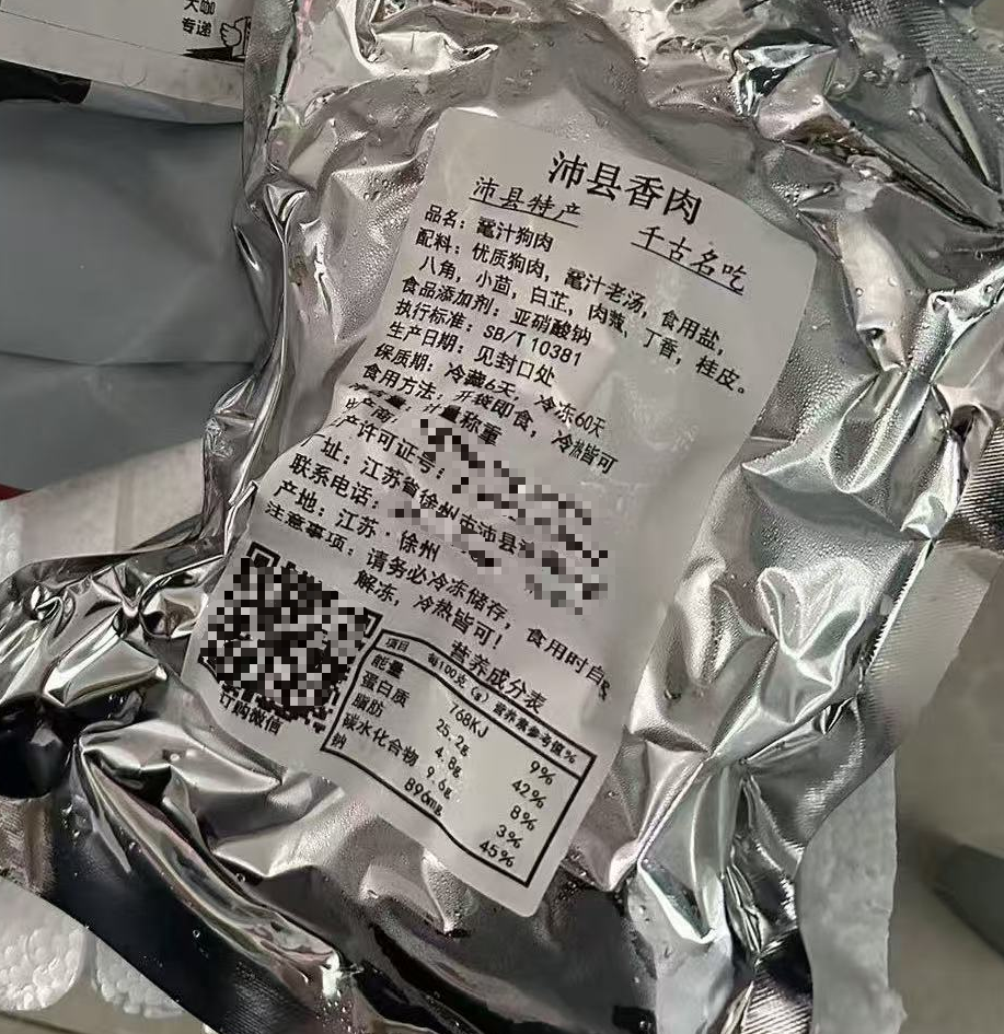 收到商品后,记者根据包装袋上的信息致电生产商。该公司销售部负责人回应称,公司确实在沛县当地经营狗肉制品,但并未通过淘宝或其他线上渠道进行售卖。