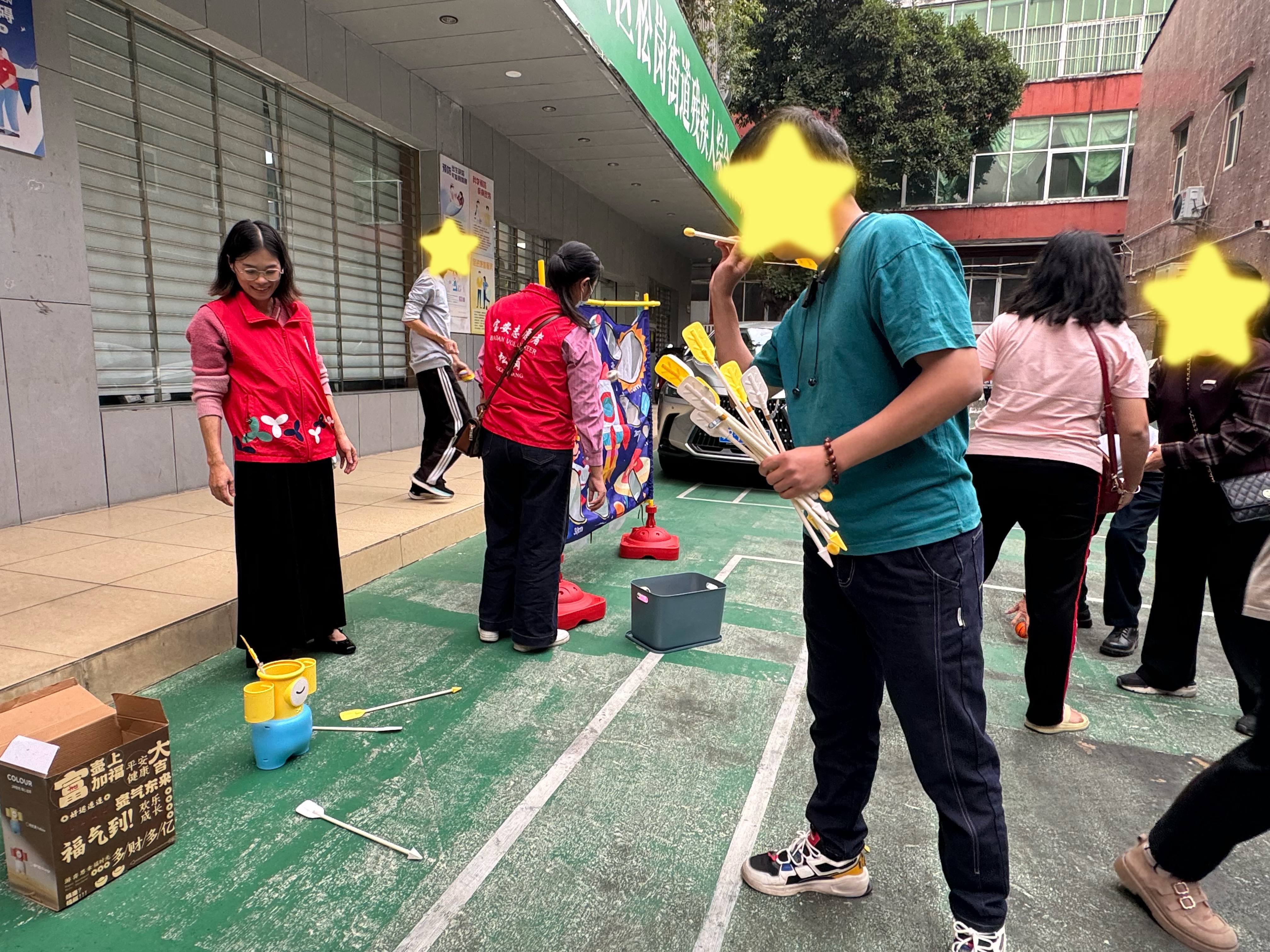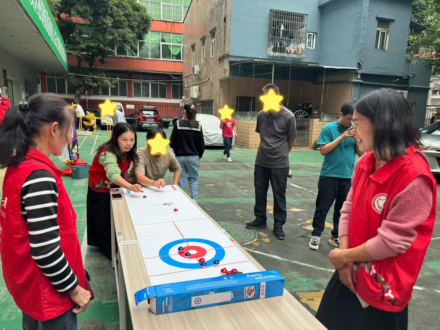 随后的趣味运动会设置了双人抛接球、精准投壶、桌上冰壶等项目,兼顾安全与互动性。听力障碍的陈大姐与志愿者通过手势默契传球;肢体残疾的刘叔在协助下调整姿势,投壶命中时赢得阵阵喝彩;桌上冰壶则考验团队策略,残健居民共同商讨战术,在协作中凝聚信任。“这些项目很贴心,不用跑跳也能玩得尽兴,还结识了新朋友。”文大哥分享道。
