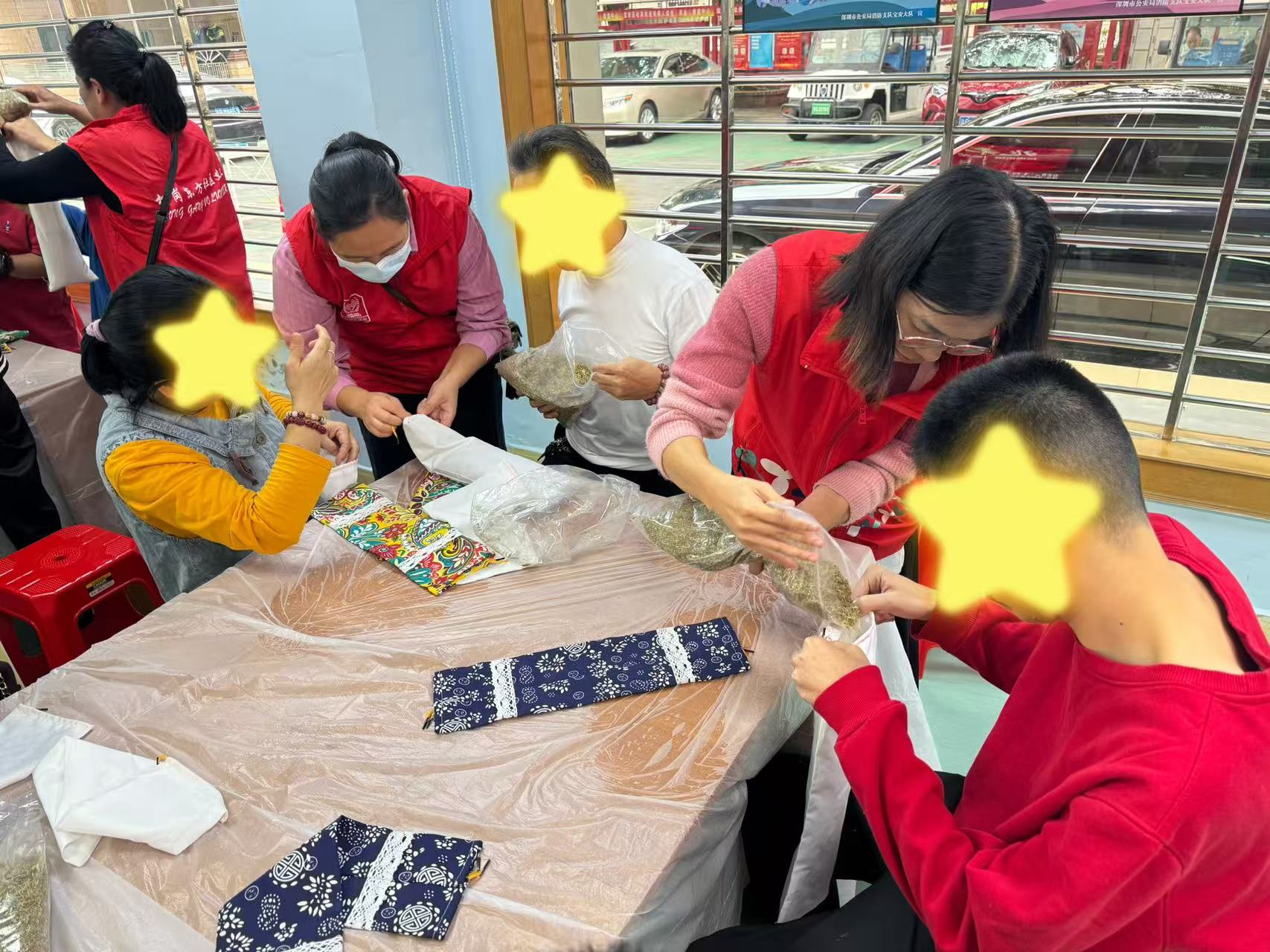 手工环节中,残疾朋友与志愿者搭档制作艾草枕,从填充艾草到封口成型,每一步都默契配合。“艾草安神,这个枕头既实用又有意义,一起制作特别开心。”李阿姨捧着手工枕笑着说道。社工在指导过程中融入健康知识,让手工体验成为传递关怀的纽带。