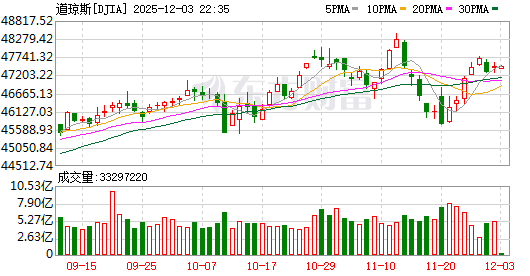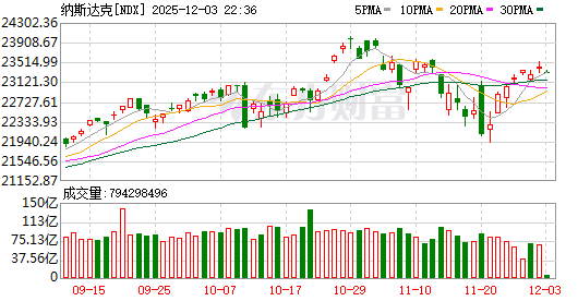 12月3日消息,美股三大指数集体低开,道琼斯指数跌0.05%,标普500指数跌0.21%,纳斯达克指数低开0.45%。