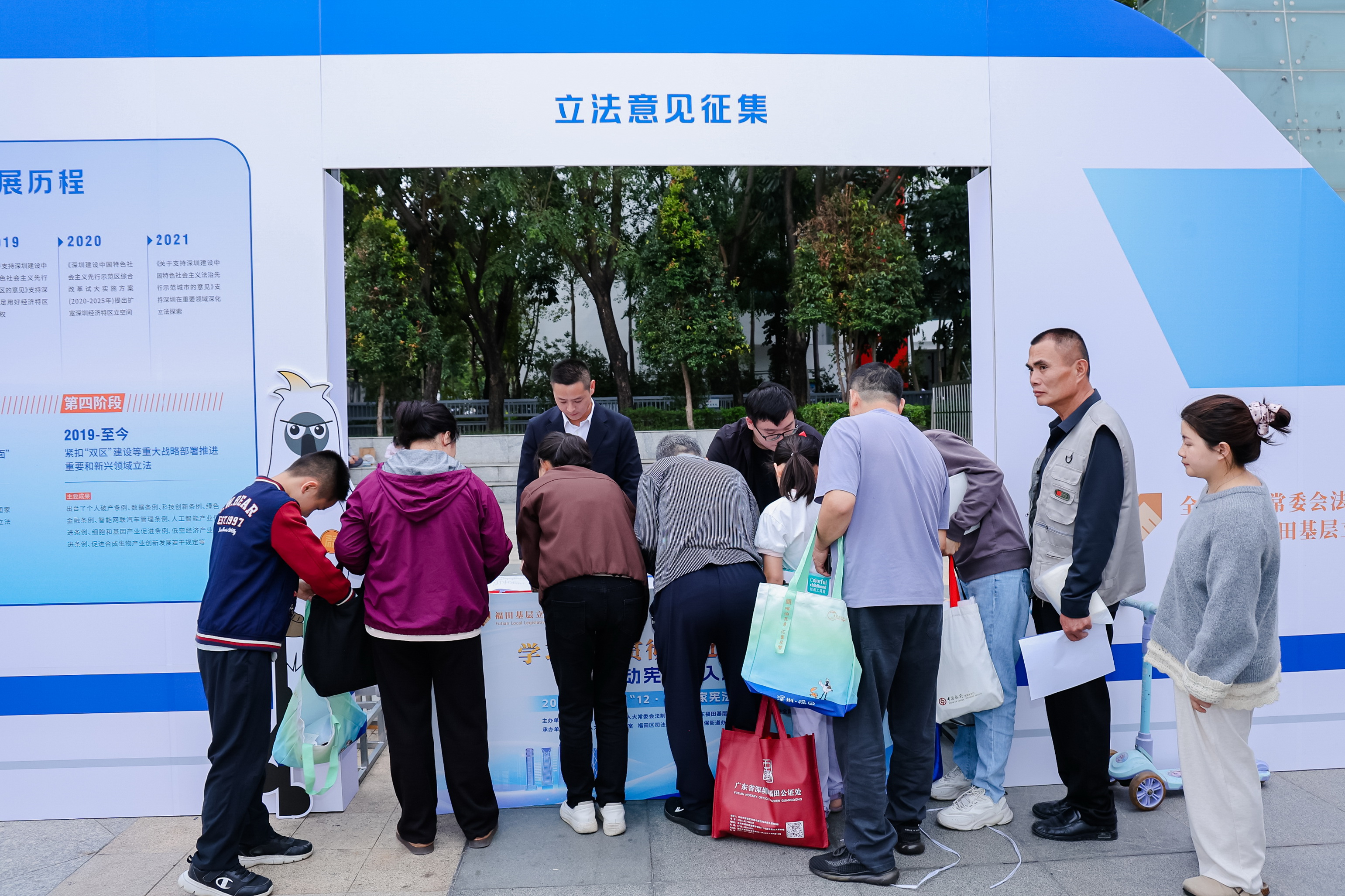 福田区人大常委会主任马宏介绍,弘扬宪法精神、维护宪法权威,是实现国家治理现代化的必然要求,更是满足人民群众对美好生活向往的根本法治保障。近一年来,福田基层立法联系点充分发挥了国家立法“直通车”、党和群众的“连心桥”、民主法治“展示窗”的重要作用,让福田声音、特区实践、湾区智慧不断向国家立法机关输送。2025年11月1日起施行的《法治宣传教育法》就吸收了来自福田基层立法联系点的10条意见,群众的意见被写入了国家法律里。活动现场设置了立法“直通车”民意征集点,现场征集对《检察公益诉讼法(草案)》的意见建议,群众的意见通过福田基层立法联系点直达国家最高立法机关。