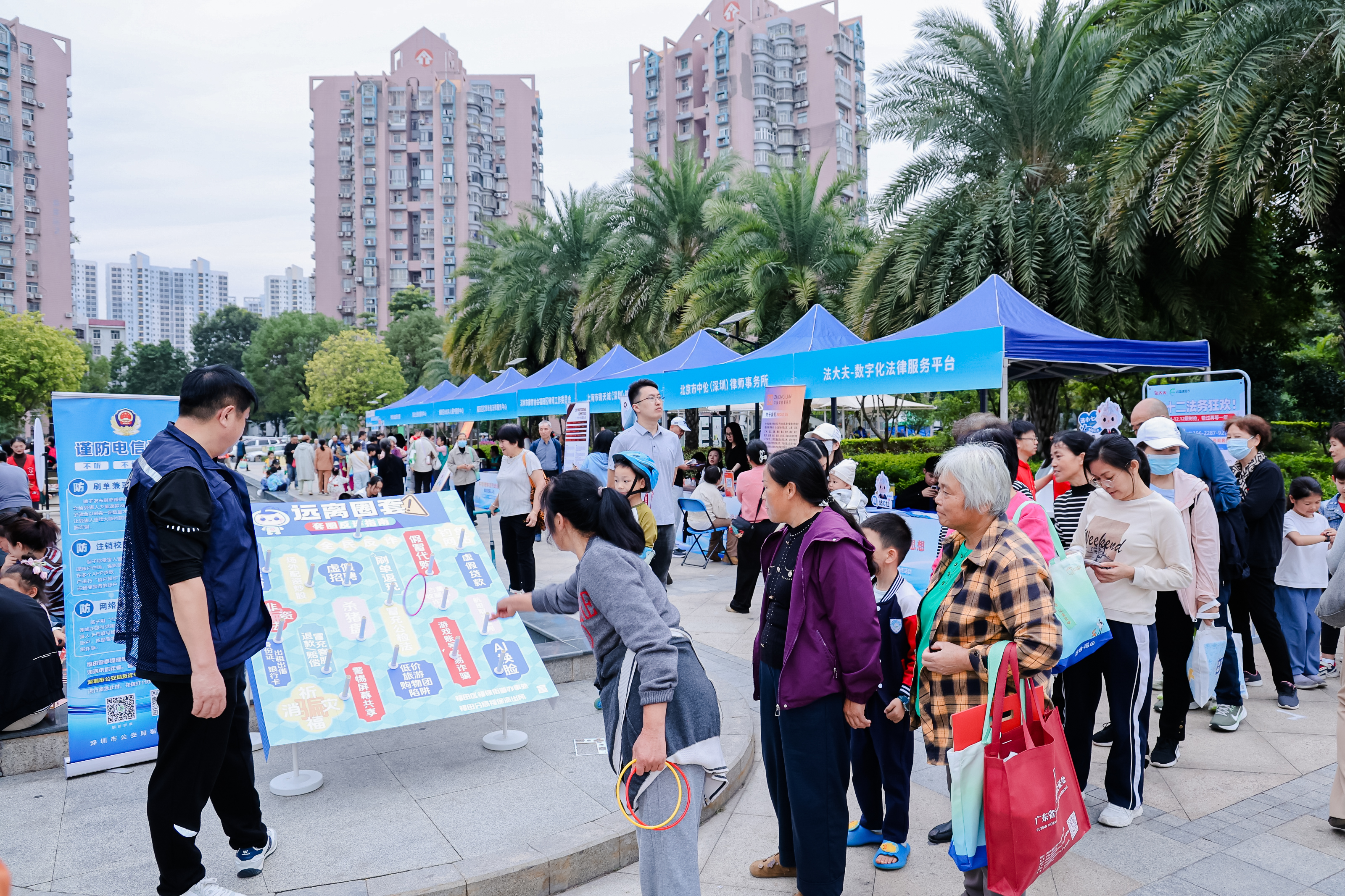 法治市集热闹非凡,汇聚了福田区法院、检察院、公安分局、河套福保立法联系点、福保街道办事处及各社区等24家机构,形成全链条法律服务矩阵。市民手持宣传册穿梭于各个摊位,有的咨询物业纠纷,有的了解反诈知识,有的为孩子询问校园安全权益。“没想到逛个市集,就把困扰好几个月的劳务纠纷搞明白了!”一位群众连连道谢。