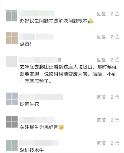 住在坂田的网友@陈先生在评论区留言:“十几年前坂田深受这个填埋场臭味之苦,没想到现在变废为宝了。”