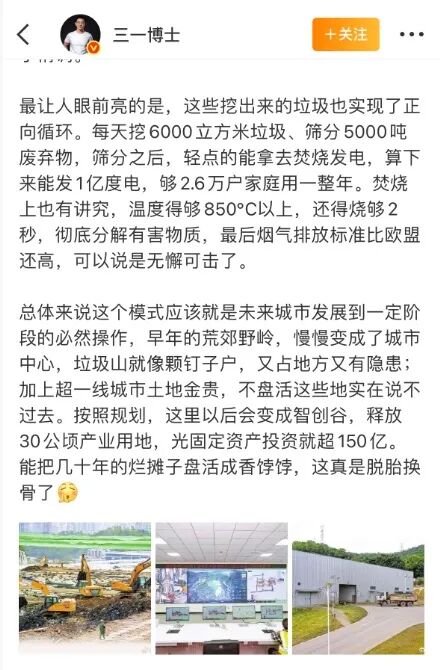 不同领域的博主大V对此纷纷关注及跟帖,“前瞻经济学人”等行业智库围绕这场“废地变宝地”的探索创新进行了解读。