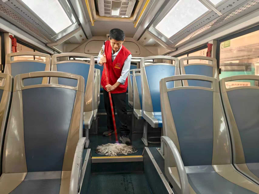 经过志愿者们数小时的辛勤付出,50多台车辆车厢内焕然一新,仿佛被赋予了新的生命。当乘客们踏入干净整洁的车厢,脸上纷纷露出惊喜与满意的笑容,这无疑是对志愿者们最大的肯定和鼓励。