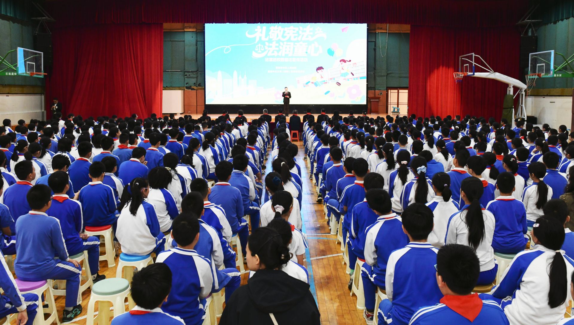 逗趣小品、音乐快板、幽默情景剧……12月4日,在香港中文大学(深圳)附属彩田学校,深圳市中级人民法院以“礼敬宪法 法润童心”为主题,为该校500名师生带来了一场形式多样、寓教于乐的沉浸式普法,让孩子们在欢声笑语中切实感受到宪法就在身边。