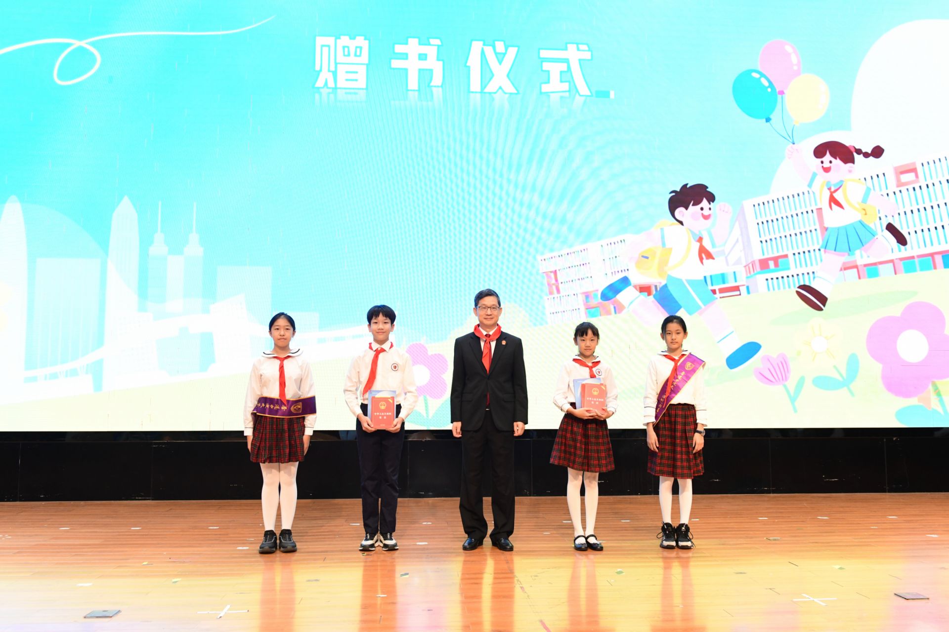 活动还举行了法治辅导员聘任仪式和赠书仪式。市中级法院退休法官吴方玲受聘担任香港中文大学(深圳)附属彩田学校法治辅导员;市中级法院党组成员、副院长黄志坚向学生代表赠送普法书籍。