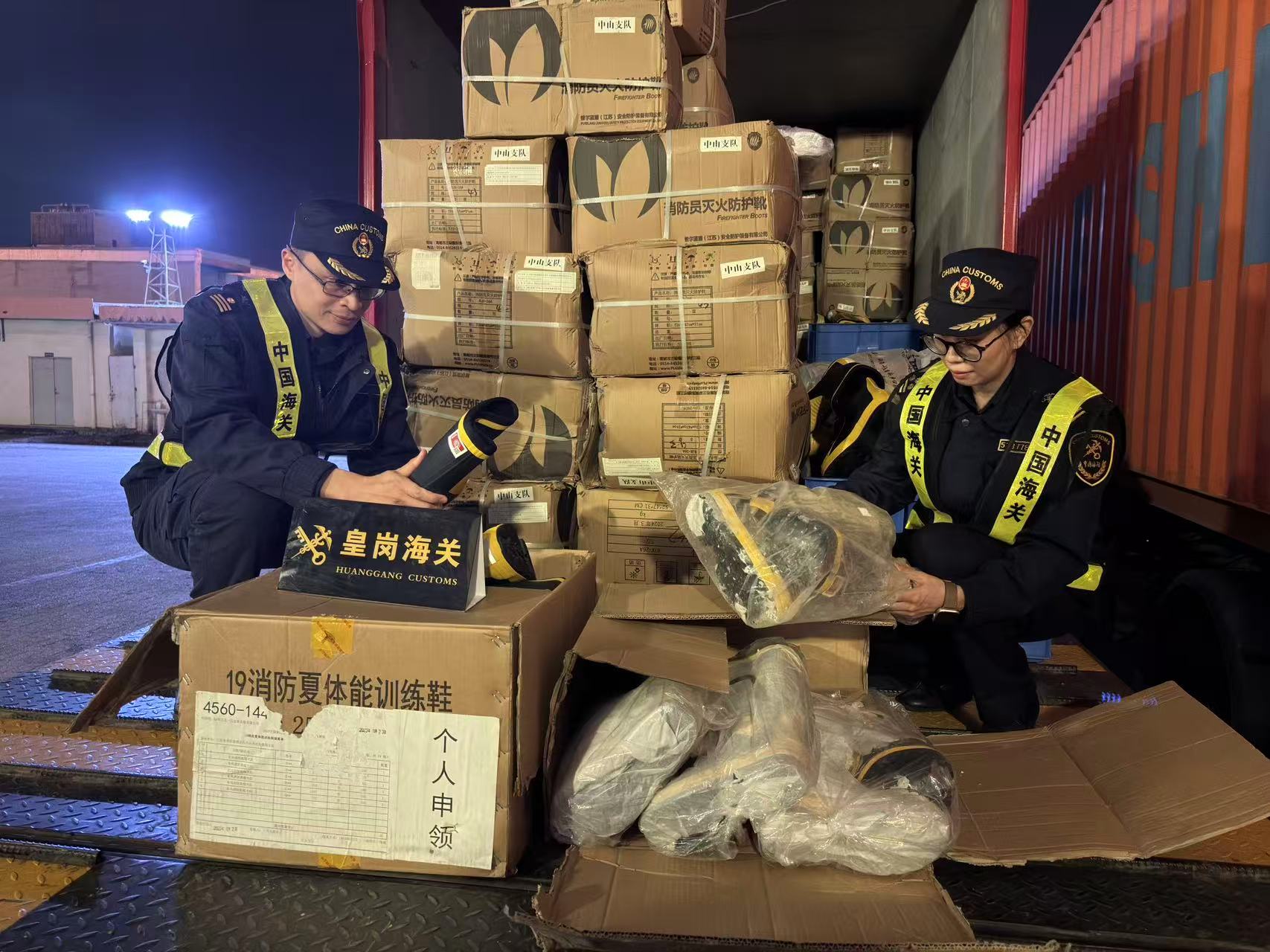 海关关员在皇岗口岸快速验放一批援港消防靴