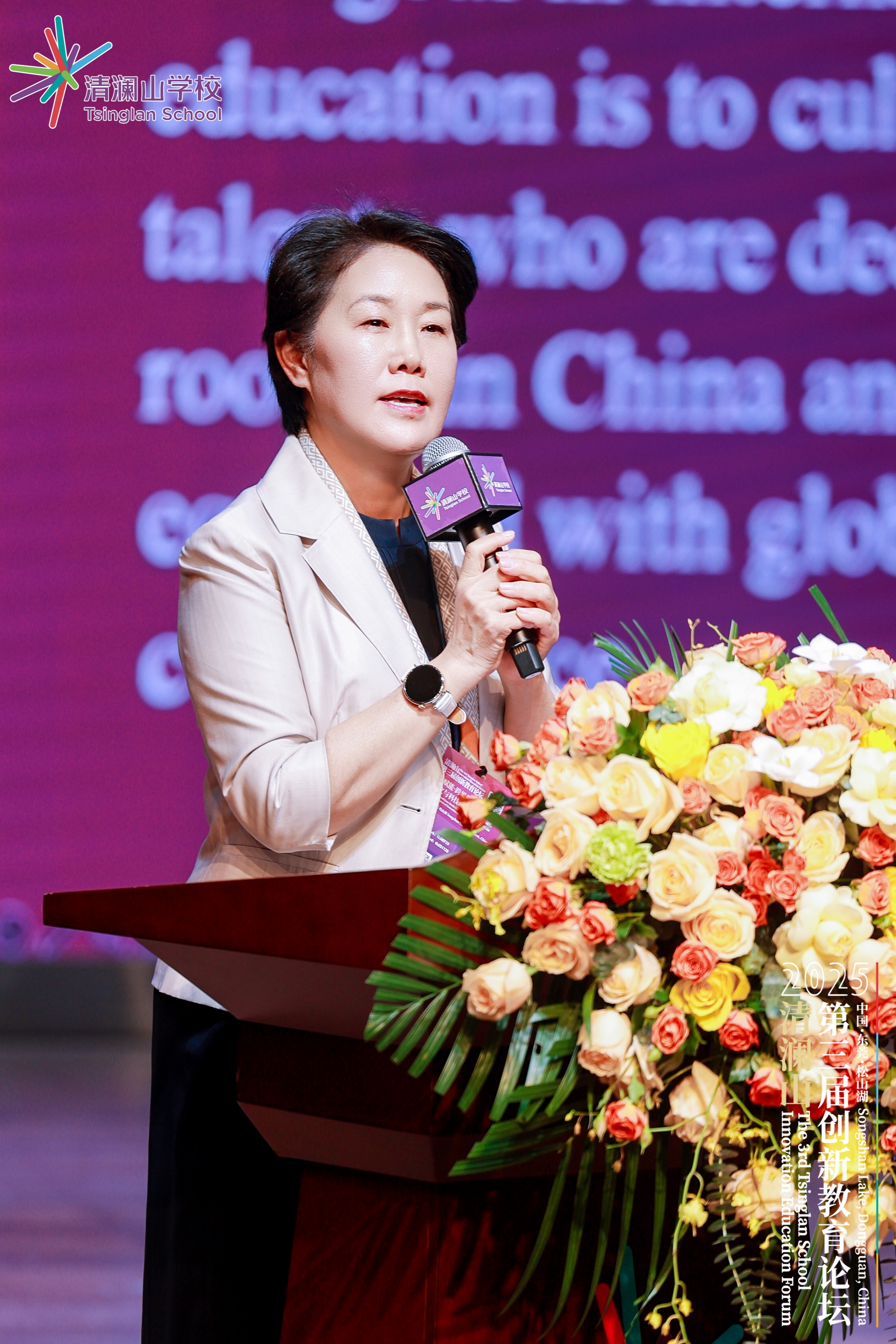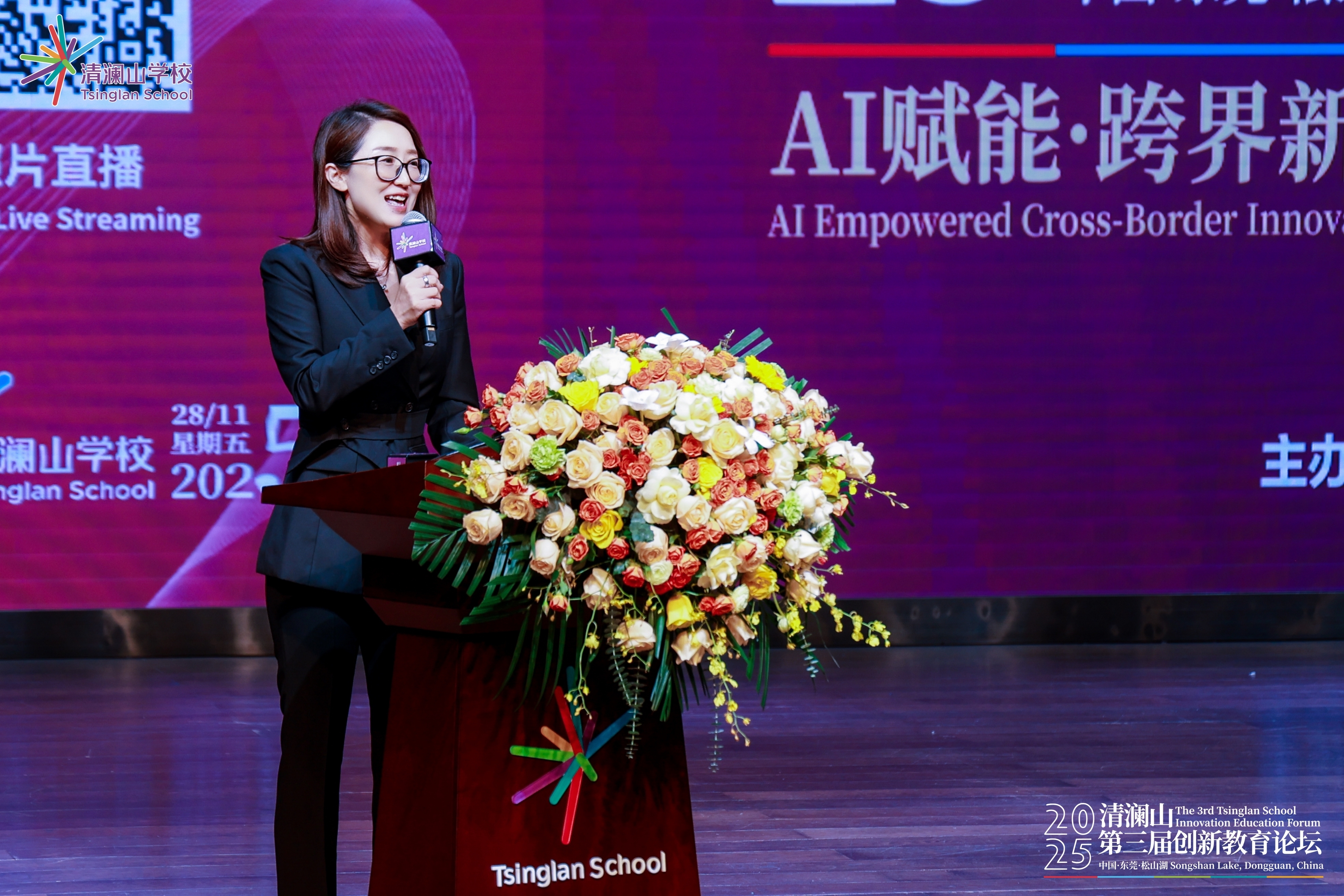 清澜山学校校长李文平表示,教育的真正目的在于培养独立思考的心灵,核心命题应从“教孩子使用工具”转向“引导孩子找到值得用工具解决的问题”。她分享了清澜山学子在AI赋能下的创新实践,包括荣获全球“皮特·康莱德学者奖”的Aquabel项目,展现了学生将奇思妙想转化为现实影响力的巨大潜能。