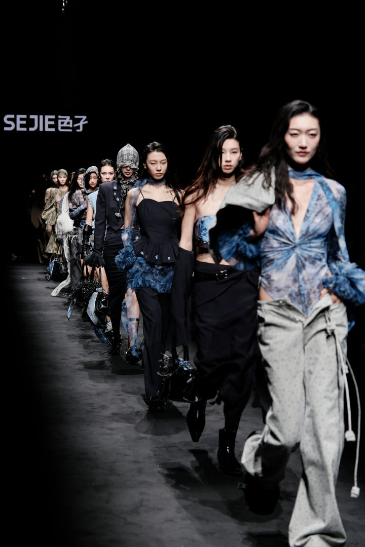 盛放为序,织梦十二时辰。“SEJIE 色孑”2026 春夏系列力求表达和诠释当代的东方浪漫和东方气韵。整场设计营造出繁花映日,山河入梦的图景,呈现了中国传统设计中“云锦裁天光,朱墙映碧色”的古韵质感。撷取自然深处的盎然生机,借助十二时辰的色彩,从“卯时”的栀黄初露,到“申时”的茜色满园……秀场的一件件作品,恰似晚霞穿过天际的惊鸿一瞥。