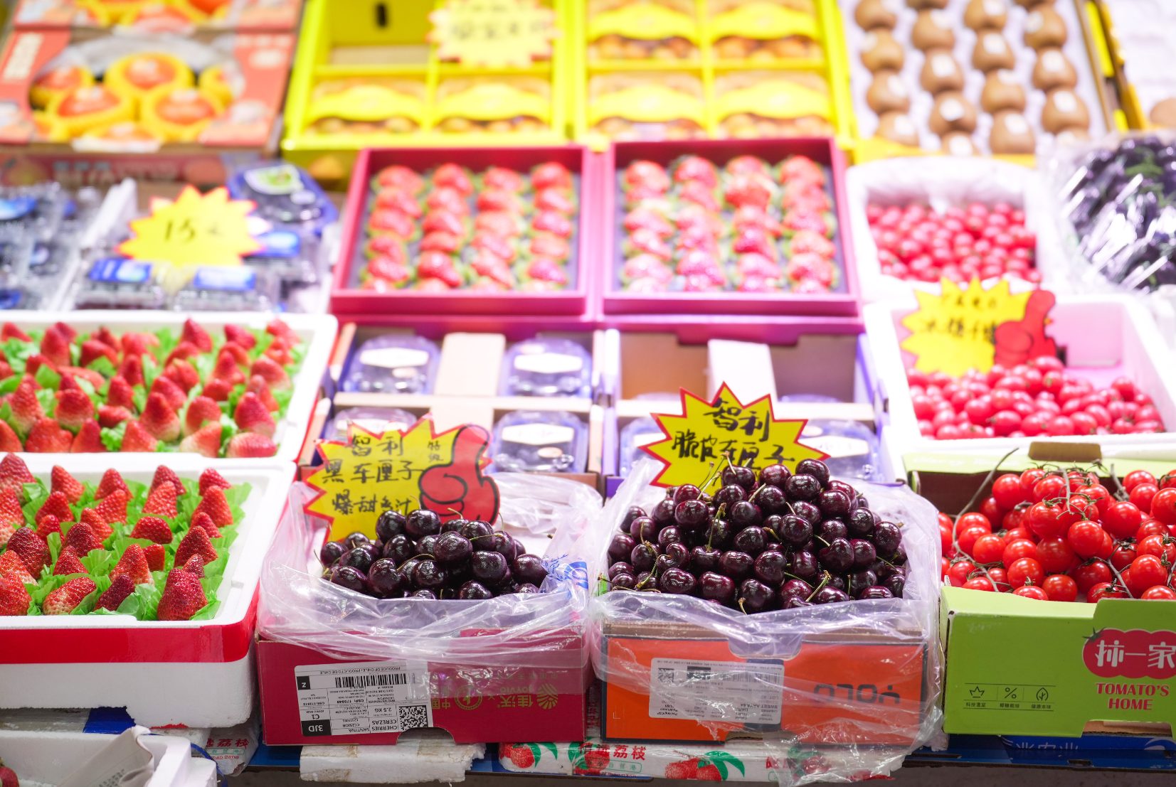 对于如何挑选车厘子,该负责人表示,车厘子并非越大越好,性价比较高的规格在J-3J。挑选时首选硬度好的果子,色泽可选择红色果品,黑红色的果品熟度高、糖度高,但硬度较低,相比红色果也会更不耐储藏。车厘子的保鲜期较短,买完之后建议放到冰箱冷藏,并尽快食用。