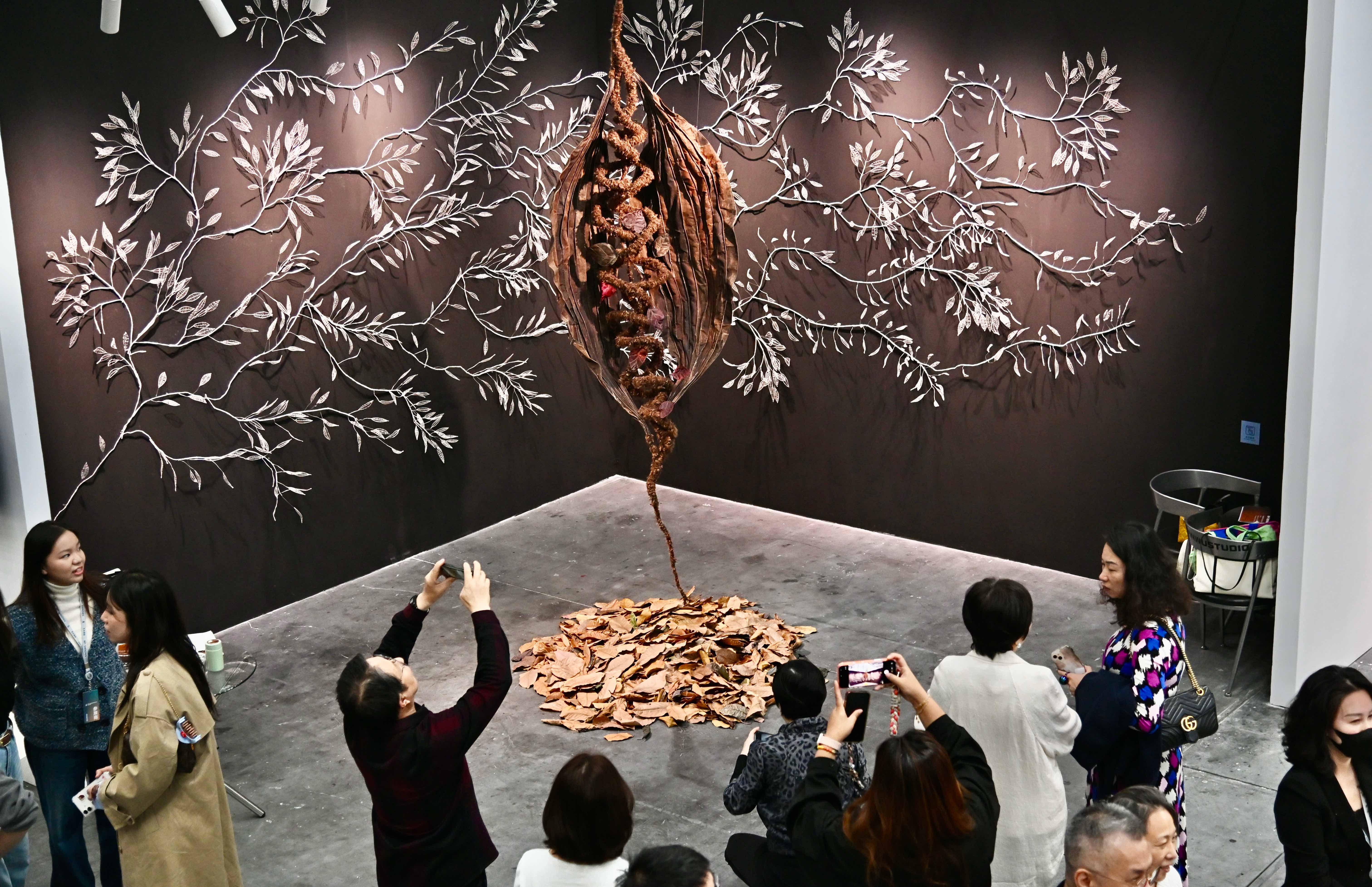 在不少业内人士眼中,今年艺术深圳的“国际范”成色更足,更亮眼。比如,常青画廊带来德国艺术家、威尼斯双年展金狮奖得主托比亚斯·雷贝格的装置作品《我在你之外》。托比亚斯·雷贝格是当代全球最受瞩目的德国艺术家之一。他的作品成为现场观众最佳打卡点之一。