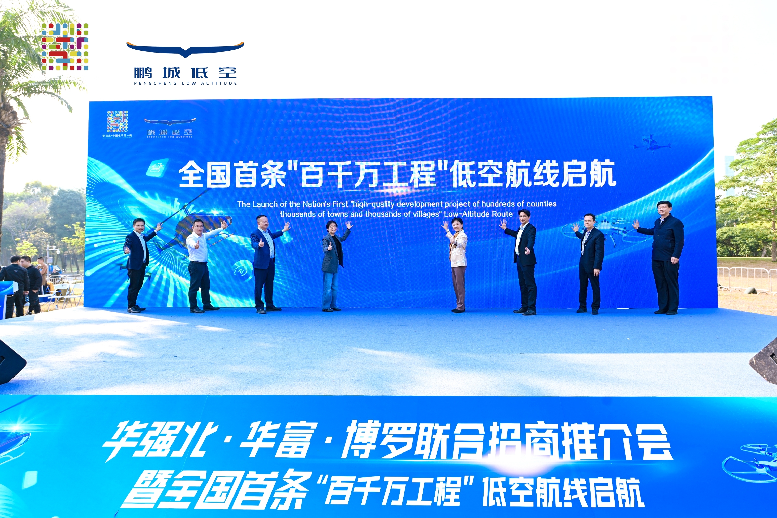 在这一里程碑时刻,华强北·华富·博罗联合招商推介会暨全国首条“百千万工程”低空航线启航活动在深圳中心公园隆重举行。