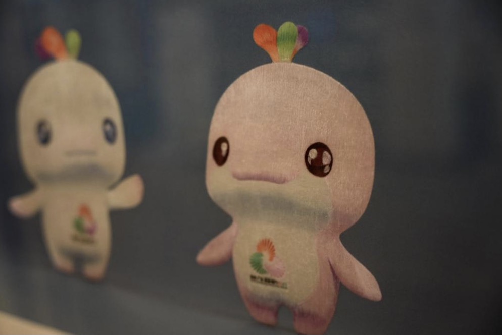 詹亚华创作的苏绣《吉祥物》以赛会吉祥物“喜洋洋、乐融融”为蓝本,选用珍贵丝素缎、渐次晕染上象征粤港澳大湾区精神的木棉红、紫荆紫与莲花绿。