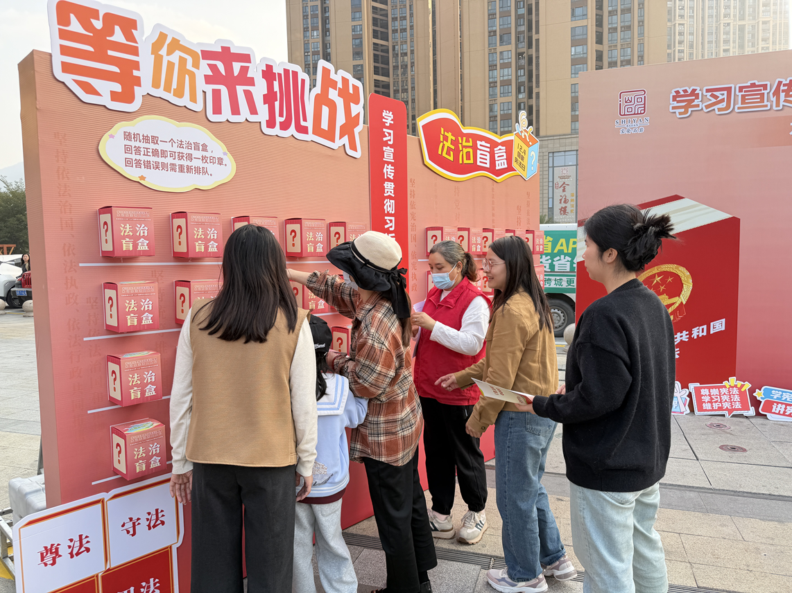 活动特别设置的“法治盲盒”互动体验区成为现场亮点。居民们踊跃参与,通过答题学法的形式,让法律知识在轻松氛围中入脑入心。