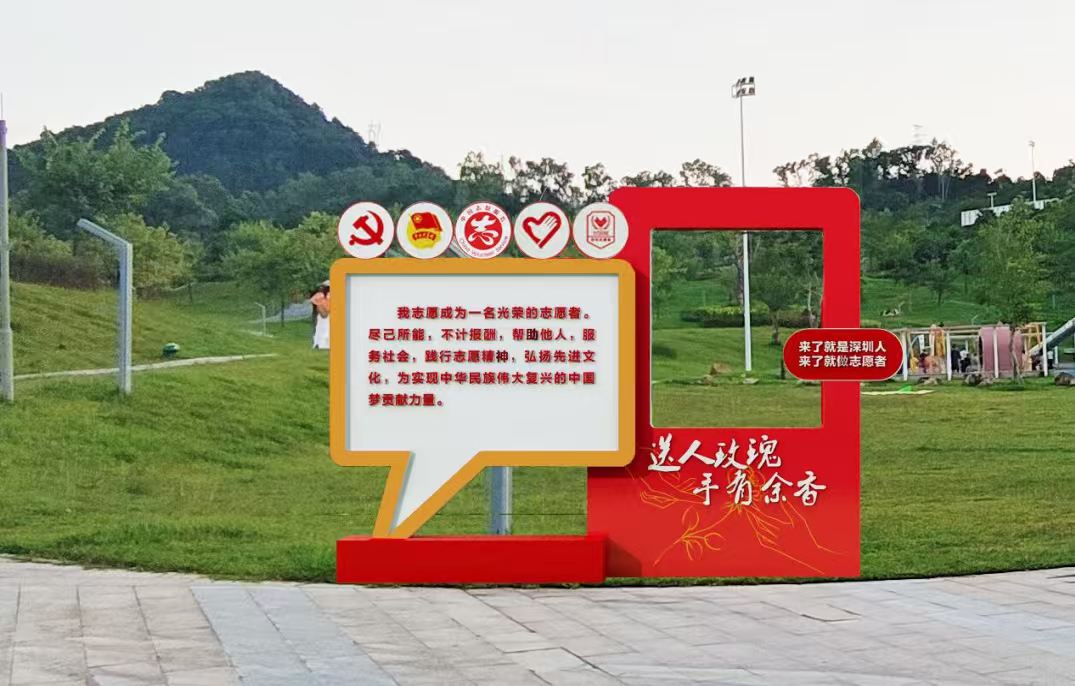 活动上,深圳首个志愿服务主题公园——北站中心公园正式揭牌。据悉,深圳志愿服务主题公园是深圳市积极响应并全面贯彻落实中办、国办关于建设志愿服务主题公园阵地的要求,积极谋划推进建设而成。目的在于让志愿服务文化在公园这个载体中可感可知,使其成为属于深圳志愿服务的专属阵地和志愿品牌。