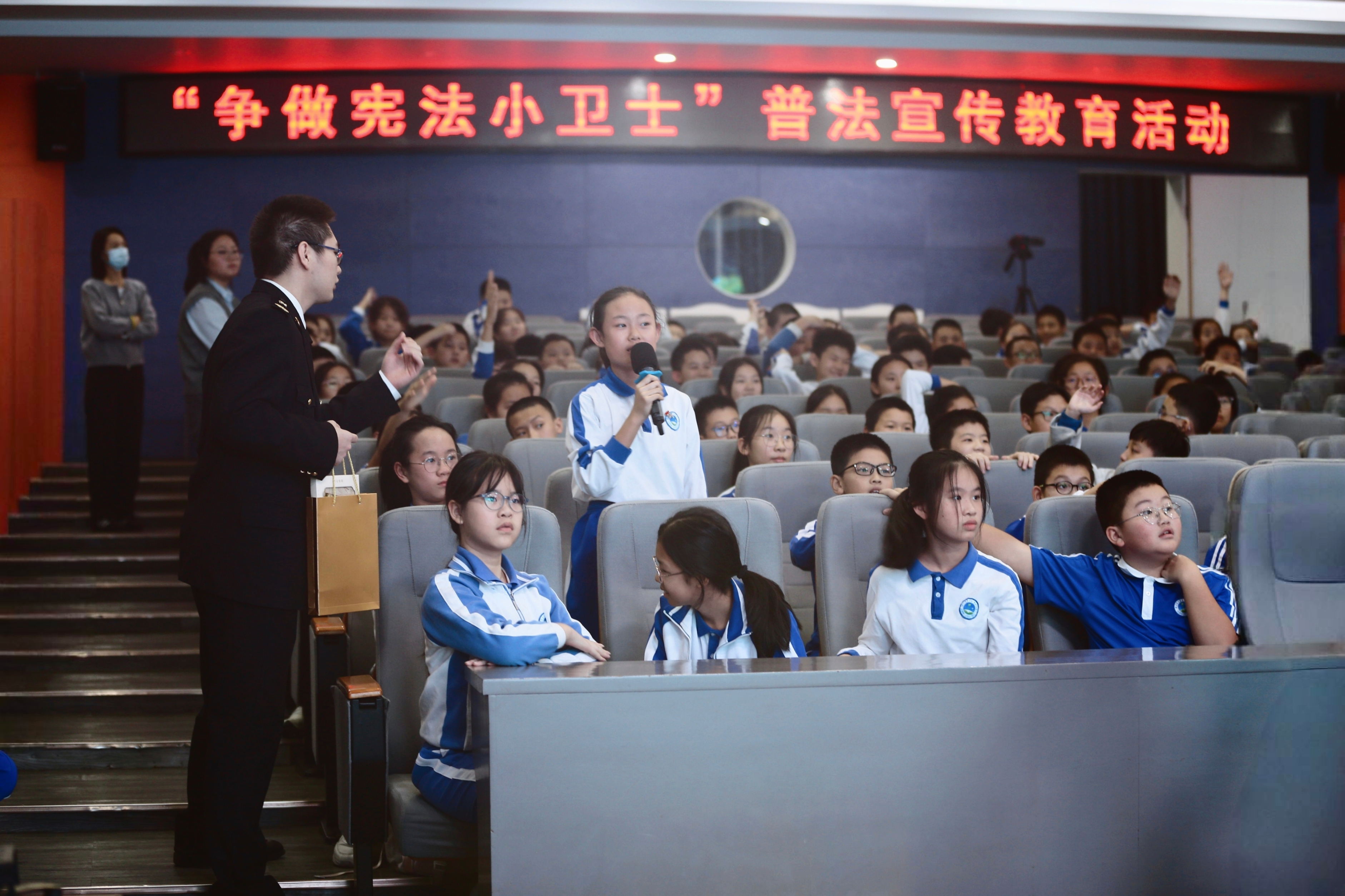 校园里的普法活动更是充满朝气。“我知道!进口食品要有中文标签!”在华南实验学校的礼堂里,一个小男孩抢答成功,兴奋地接过海关阿姨赠送的普法宣传品。深圳海关所属观澜海关的普法讲师们通过“火眼金睛”趣味问答,让300多名师生在欢声笑语中掌握了宪法知识和食品安全常识。