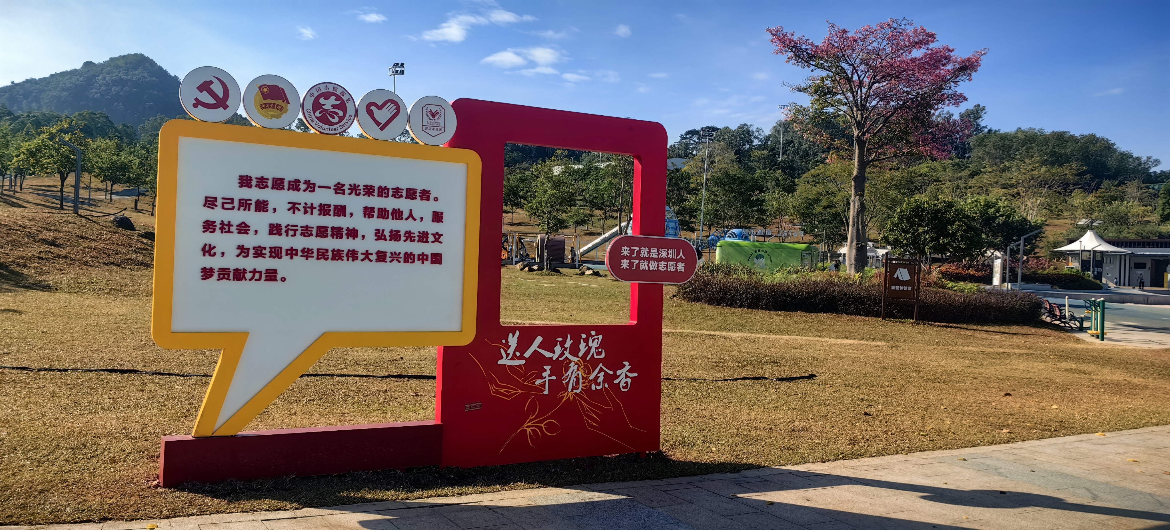 为打造深圳志愿服务的专属阵地和特色品牌,市委社会工作部依托深圳北站公园人流量大、周边志愿服务氛围浓郁等特点,在此打造全市首个志愿服务主题公园。活动当天,焕然一新的志愿服务主题公园吸引不少市民关注,拍照打卡的人络绎不绝。