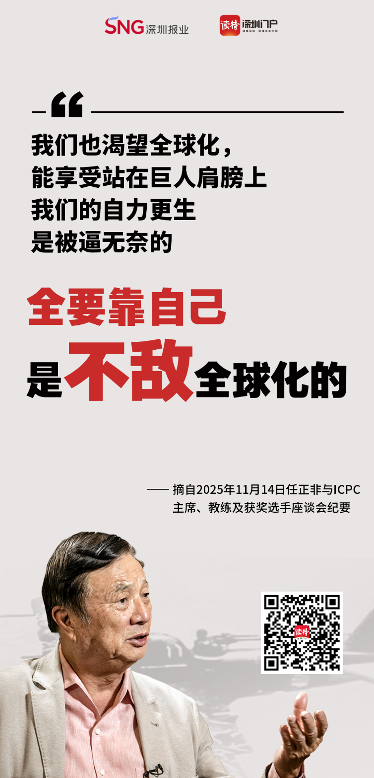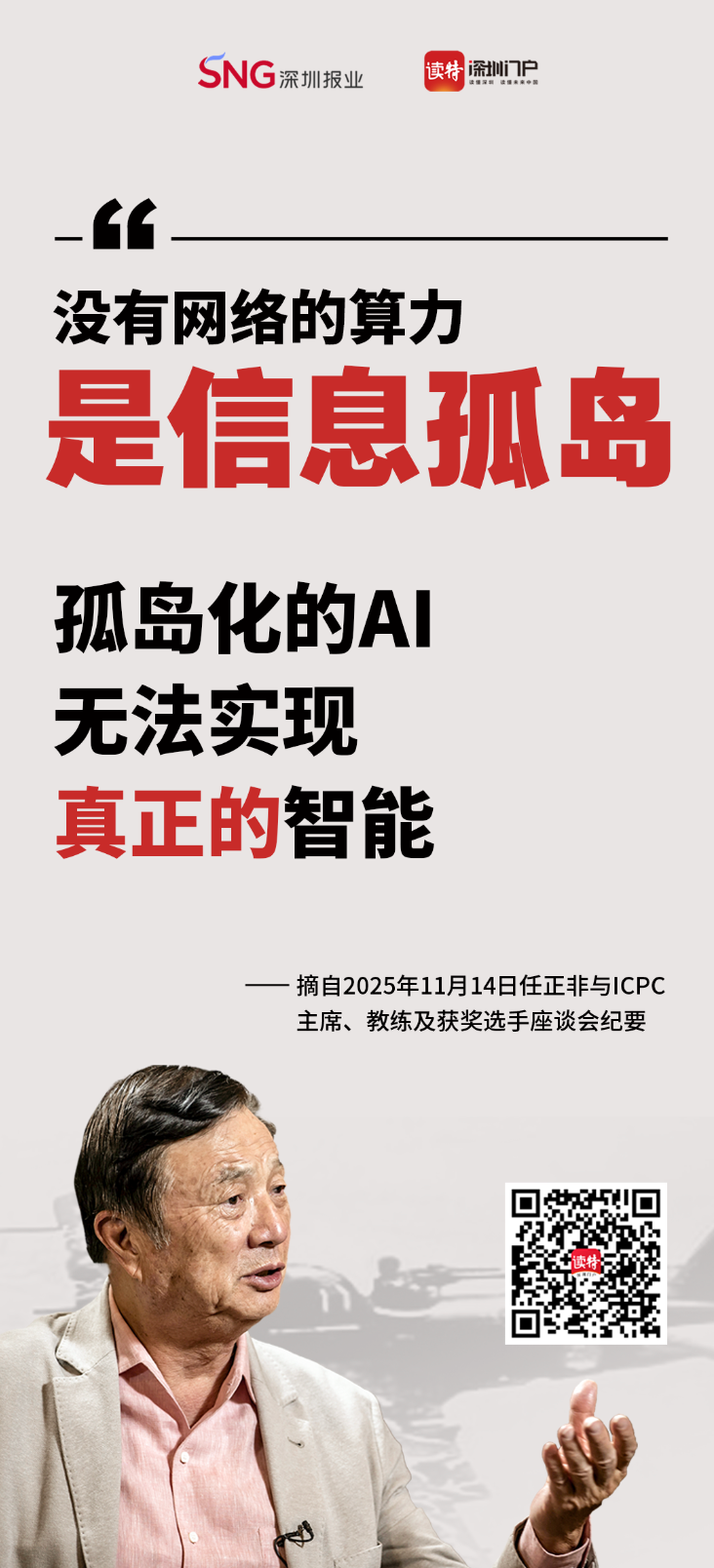 12月5日,ICPC(国际大学生程序设计竞赛)北京总部官网发布任正非与ICPC主席、教练及获奖选手座谈会纪要。任正非在讲话中围绕青年成长、人才培养、教育本质、人工智能发展以及文明交流等议题,分享了他对时代、技术与未来的深刻洞察,也折射出华为在当前地缘政治紧张,全球化退潮,以及人工智能浪潮交汇时代背景下的战略思考与价值立场。