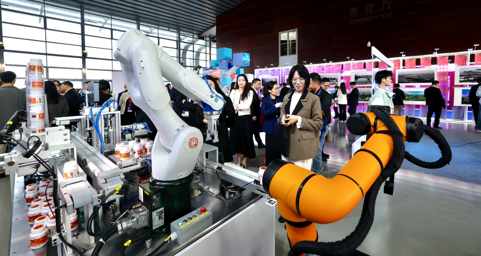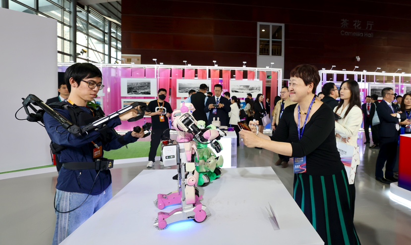 大会特别设置深圳品牌展示区,集中展示华为、荣耀、洲明、喜德盛、影石、韶音、众擎等多家行业领军企业的特色产品,涵盖鸿蒙生态系统的创新成果、人形机器人、智能耳机、智能全景相机等,吸引众多参会嘉宾驻足了解、体验。