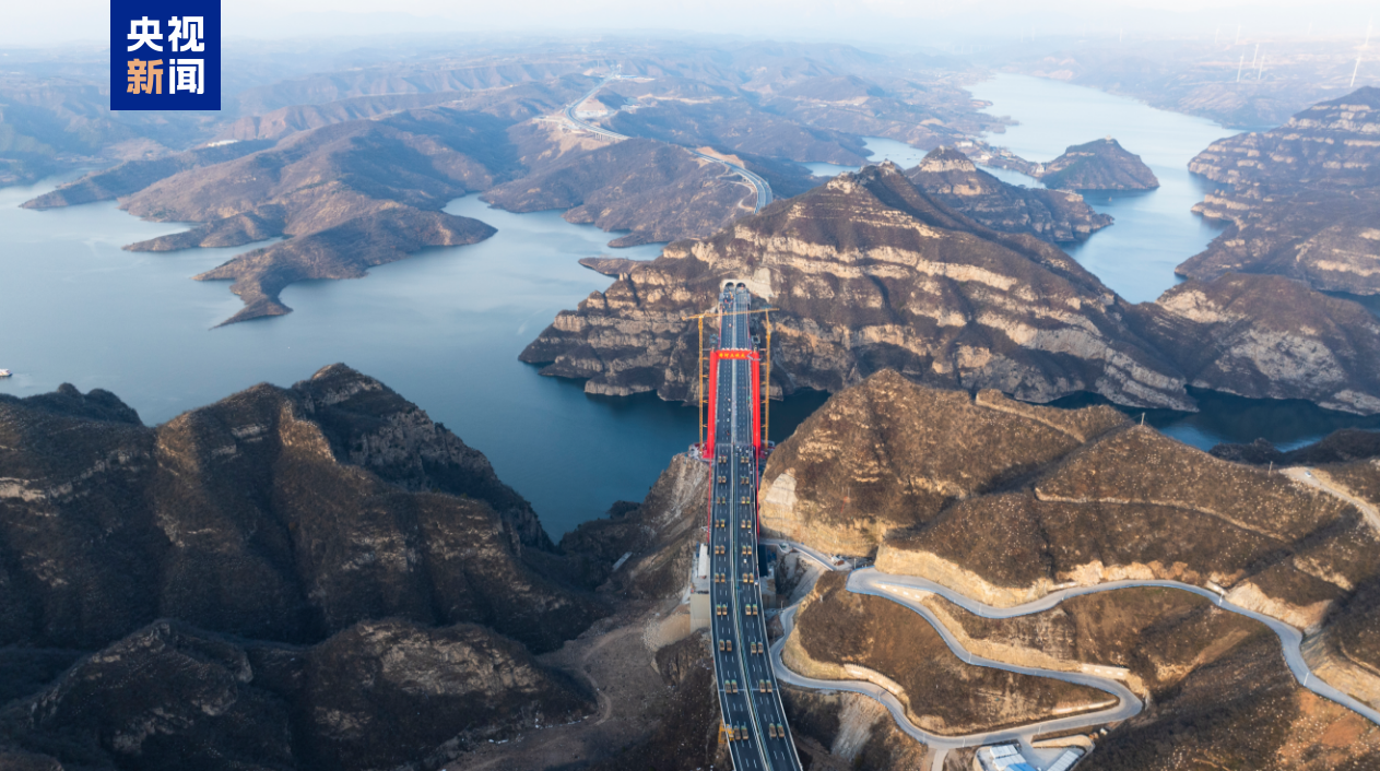 黄河三峡大桥地处河南济源与新安交界的王屋山-黛眉山世界地质公园,桥梁主跨555米,一跨跨越黄河小浪底库区。作为济源至新安高速公路的控制性工程,大桥建成通车后,两岸通行时长将由两小时缩短至二十分钟。