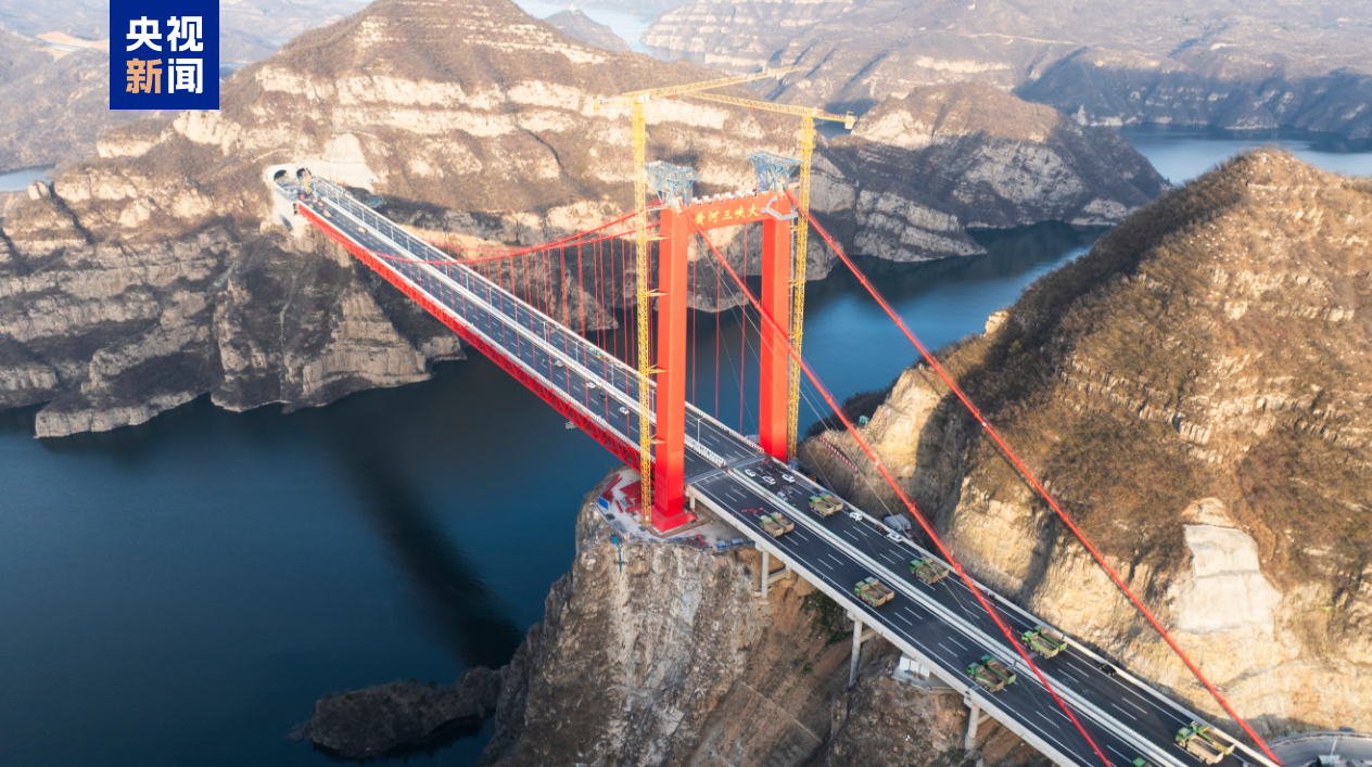 12月5日下午,世界首创独塔地锚式回转缆悬索桥——济新高速黄河三峡大桥顺利完成荷载试验,标志着大桥主体具备正式通车条件。