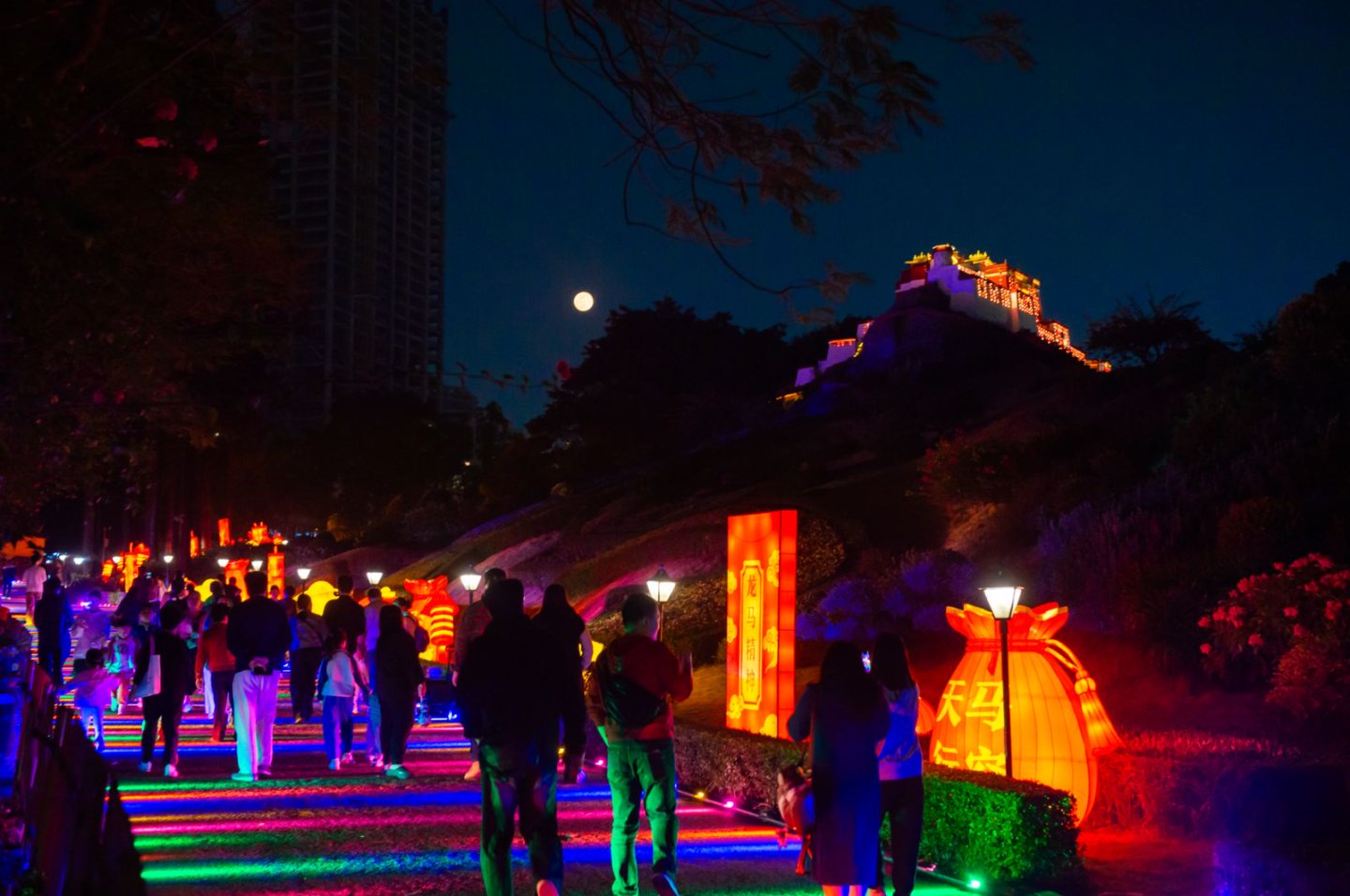 作为每年重要的深圳城市文旅活动,深圳锦绣中华灯会今年以更开放、更年轻的姿态亮相。景区以“非遗焕新”为核心理念,在53万㎡空间内打造40余组非遗主题大型灯组,从传统福瑞意象到多民族文化元素,从岭南非遗纹样到新媒体光影互动,在熟悉的场景中重新呈现中国新年的视觉语言,让游客“不止是走过灯会,而是走进灯会”。以龙首鱼身为意象的主灯组《鳌鱼游天》恢宏亮相,寓意祥瑞腾空;灯组《非遗大湾区》将岭南传统技艺与湾区城市地标融于光影,呈现文化交融的时代画卷……此外,今年灯会首次引入故宫文化“灯光里的中国”IP灯组,故宫深厚的宫灯文化与非遗彩灯技艺深度融合。景区53万㎡光影规模与文化深度全面升级,为深圳打造兼具艺术高度与大众审美的非遗灯会新标杆。