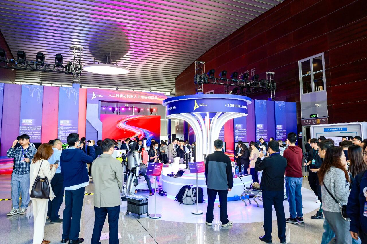 同时,在产品展示区,来自福田区的法律智能体一体机、AI训推一体机、AI硬件名片、AI情感陪伴玩具、AI家医、AI智能眼镜等产品悉数亮相,备受关注。可以看出,今年大会福田区在AI领域全面发力,展现出强大实力。