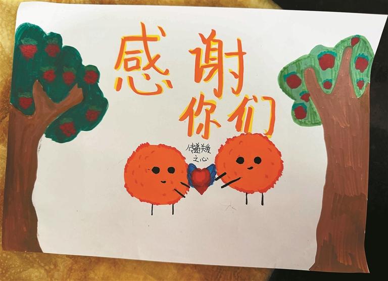姐妹俩还送上了自己提前画好的画作:荔枝树下,两个红彤彤的“人形荔枝”手拉手捧着“爱心”……画中每一笔,都饱含着对当年“救命荔枝行动”的铭记。