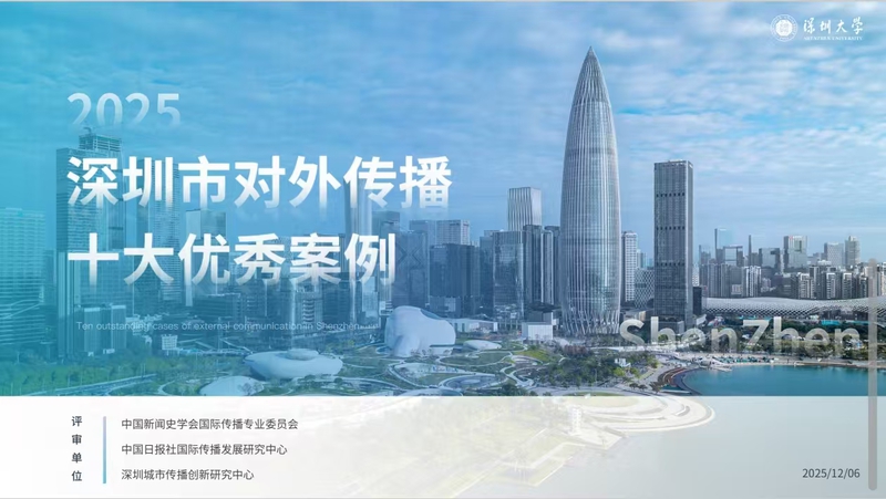 据悉,今年,中国新闻史学会国际传播专业委员会、中国日报社国际传播发展研究中心、深圳城市传播创新研究中心联合主办了“深圳市对外传播十大案例(2025)”评选工作。今年的评选得到了全市外宣部门、相关单位及企业的积极响应,共收到来自33家单位申报的100多件案例。评审工作坚持专业、严谨、公正的原则,聚焦传播案例的实效性、创新性、示范性与长期可执行性。