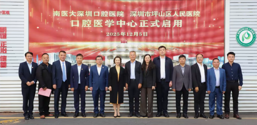 12 月 5 日上午,在深圳市坪山區人民政府和南方醫科大學領導的共同見證下,“南方醫科大學深圳口腔醫院集團與坪山區人民醫院共建口腔醫學中心”正式揭牌啟用。這是坪山區與南方醫科大學政校合作取得的又一新成果,也是南方醫科大學落實“大南醫” 戰略、深化粵港澳大灣區醫療資源布局的關鍵實踐。