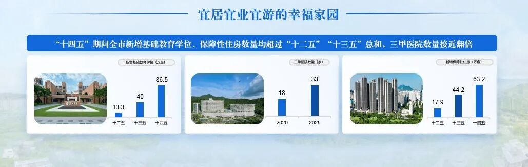 “十四五”期间,全市新增基础教育学位、医疗床位、保障性住房数量均超过“十二五”“十三五”两个五年计划总和。