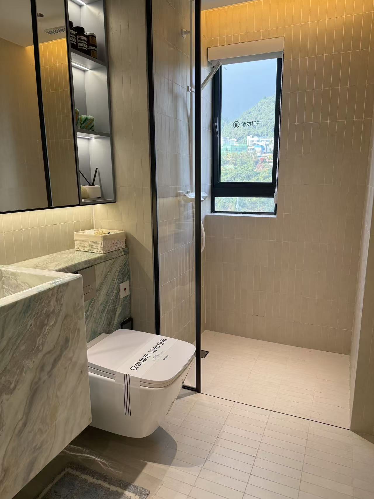 记者现场了解到,此次推出的房源均为精装修交付,其中,两房户型占比近七成,项目共有7个样板间开放展示。在样板间,记者看到,房间整洁明亮,窗外的山海美景尽收眼底。项目户型设计针对人才家庭需求,两房户型布局紧凑,设有客餐一体及连通阳台;三房户型实现动静分区,主卧空间较为宽敞,卫生间为干湿分离设计。客厅和房间均铺设了木地板,厨房的厨柜、炉具等一应俱全,洁具配备齐全,配齐家具、家电即可入住。