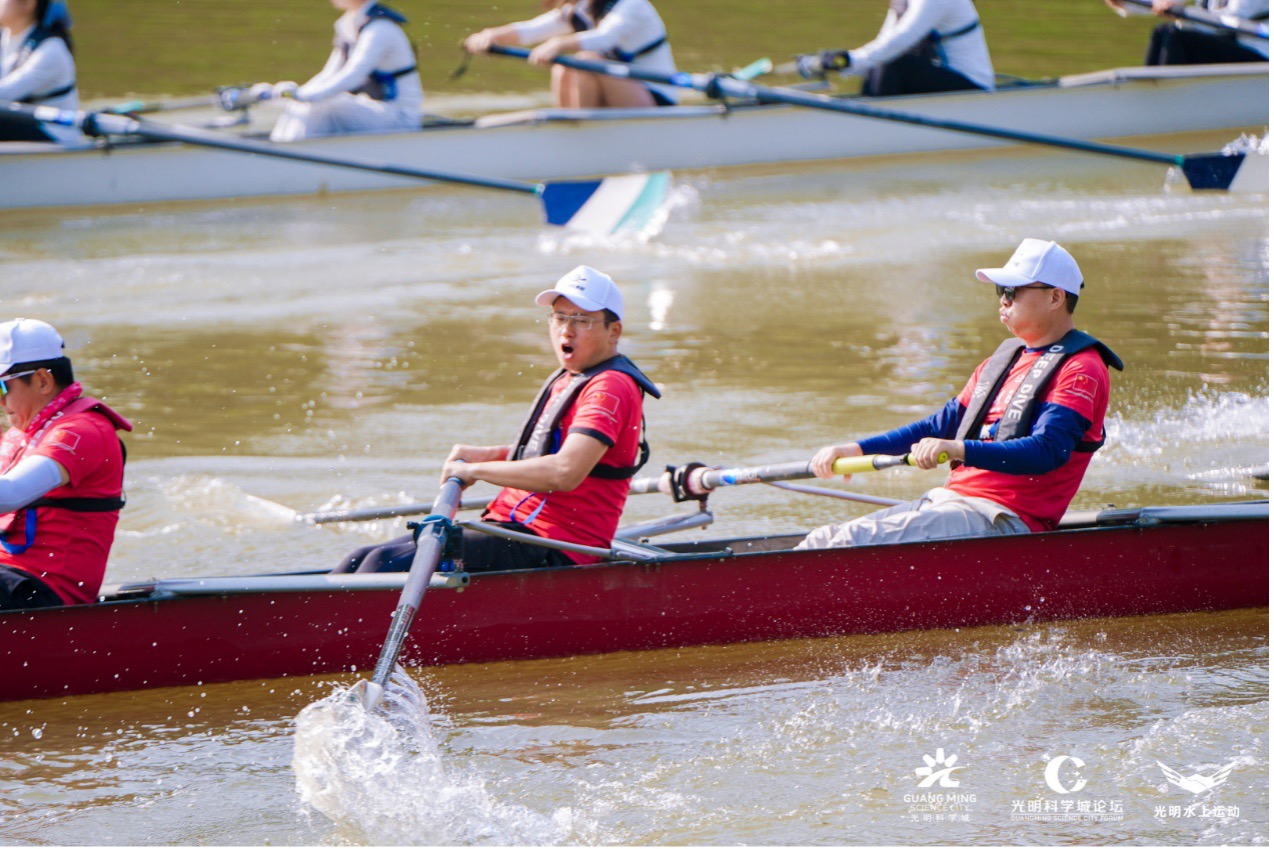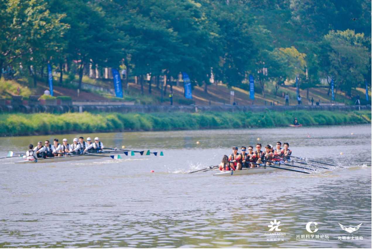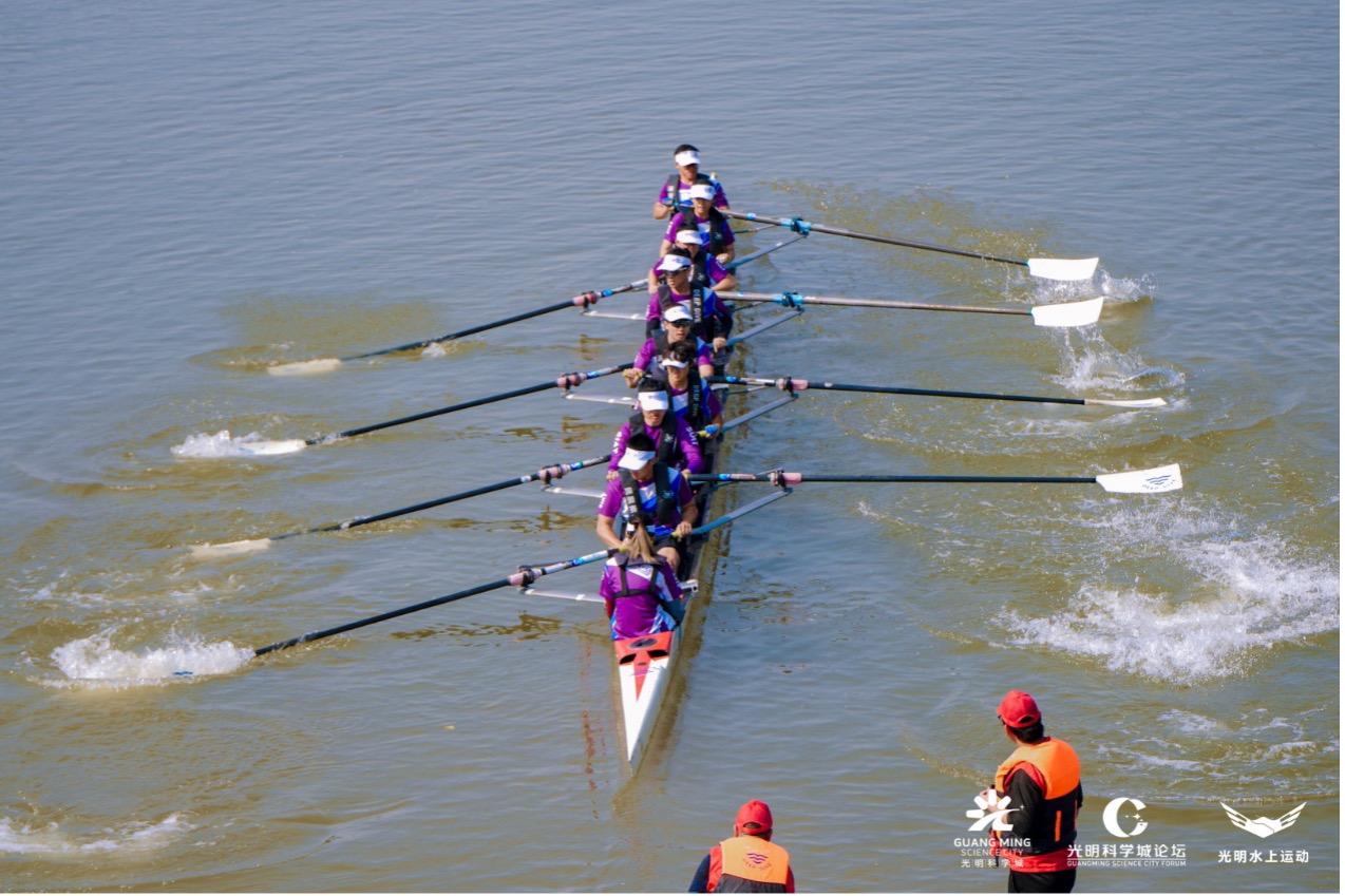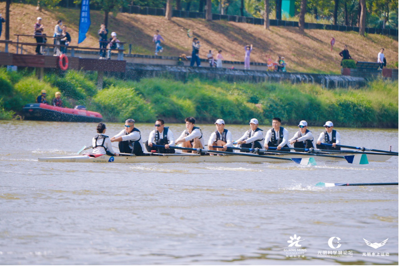 赛艇运动与光明科学城的携手,藏着精神内核的深度共鸣。这项被誉为“水面上的象棋”的运动,以极致协同、节奏把控与耐力比拼为核心,恰与科研工作所需的团队协作、潜心探索、持之以恒高度契合。以此为纽带,光明区精心打造独特的“科学+体育”城市名片。自2021年以来,光明已成功举办X9高校院所联盟赛艇联赛、茅洲河城市赛艇挑战赛等多场品牌赛事。越来越多的科学家、高校学者、企业家、赛艇爱好者汇聚与此,共同感受光明“科学、生态、人文”交相辉映的城市魅力。
