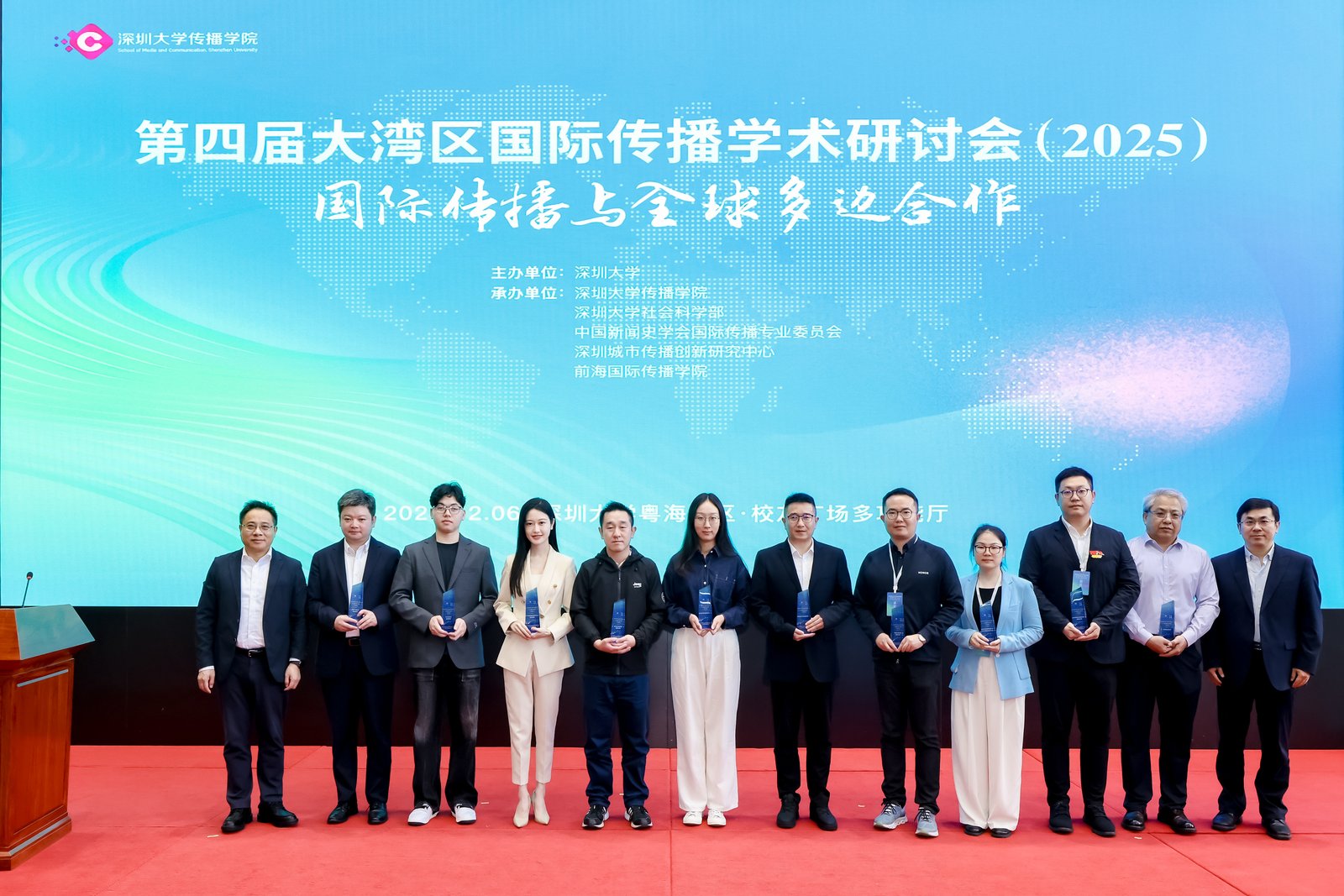 12月6日,第四届大湾区国际传播学术研讨会在深圳大学粤海校区校友广场多功能厅成功举办。本次会议以“国际传播与全球多边合作”为主题,由深圳大学主办,深圳大学传播学院、深圳大学社会科学部、中国新闻史学会国际传播专业委员会、深圳城市传播创新研究中心、前海国际传播学院联合承办,汇聚学界、业界及媒体界专家贤达,共探国际传播新路径,为深圳2026年承办APEC等重大国际会议凝聚传播智慧。