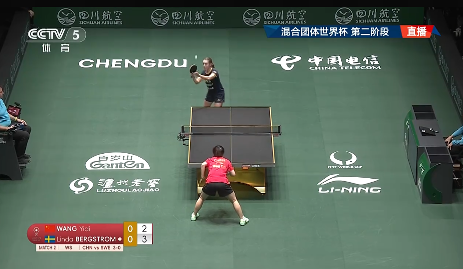 第二场女单比赛,王艺迪2-1战胜伯格斯特罗姆,三局比分为:7-11、11-7、11-9。中国队大比分5-1领先。