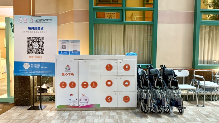 从入住到生活再到备赛,深圳力图让每个环节衔接顺畅、全程无忧,酒店大堂里,工作人员及志愿者主动协助运动员及领队们办理入住、搬运轮椅。服务台旁驻点酒店手语翻译随时待命,确保沟通无碍。公共区域设有“爱心专柜”,常用辅具可随时取用,餐厅规划了低位取餐线,用餐更方便。此外,配合运动员分级需求,深圳提供无障碍接送车辆,按需配备保障物资,还有工作人员、志愿者全程服务。