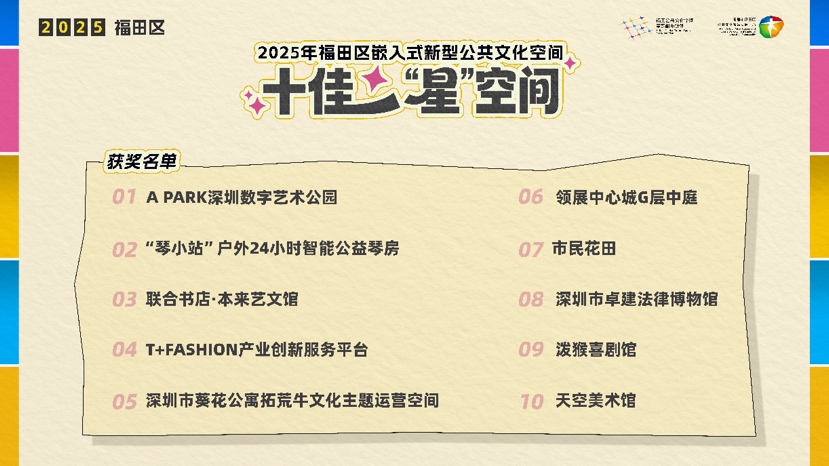 12月5日下午,2025年福田区嵌入式新型公共文化空间“有点意思”创意大赛暨十佳“星”空间颁奖会在深铁云峰城市艺术中心举办。本次活动由福田区公共文体中心主办,旨在表彰在公共文化空间运营与内容创新方面表现突出的优秀空间及主理人,并推动“嵌入式”文化空间的持续发展与社会影响力提升。