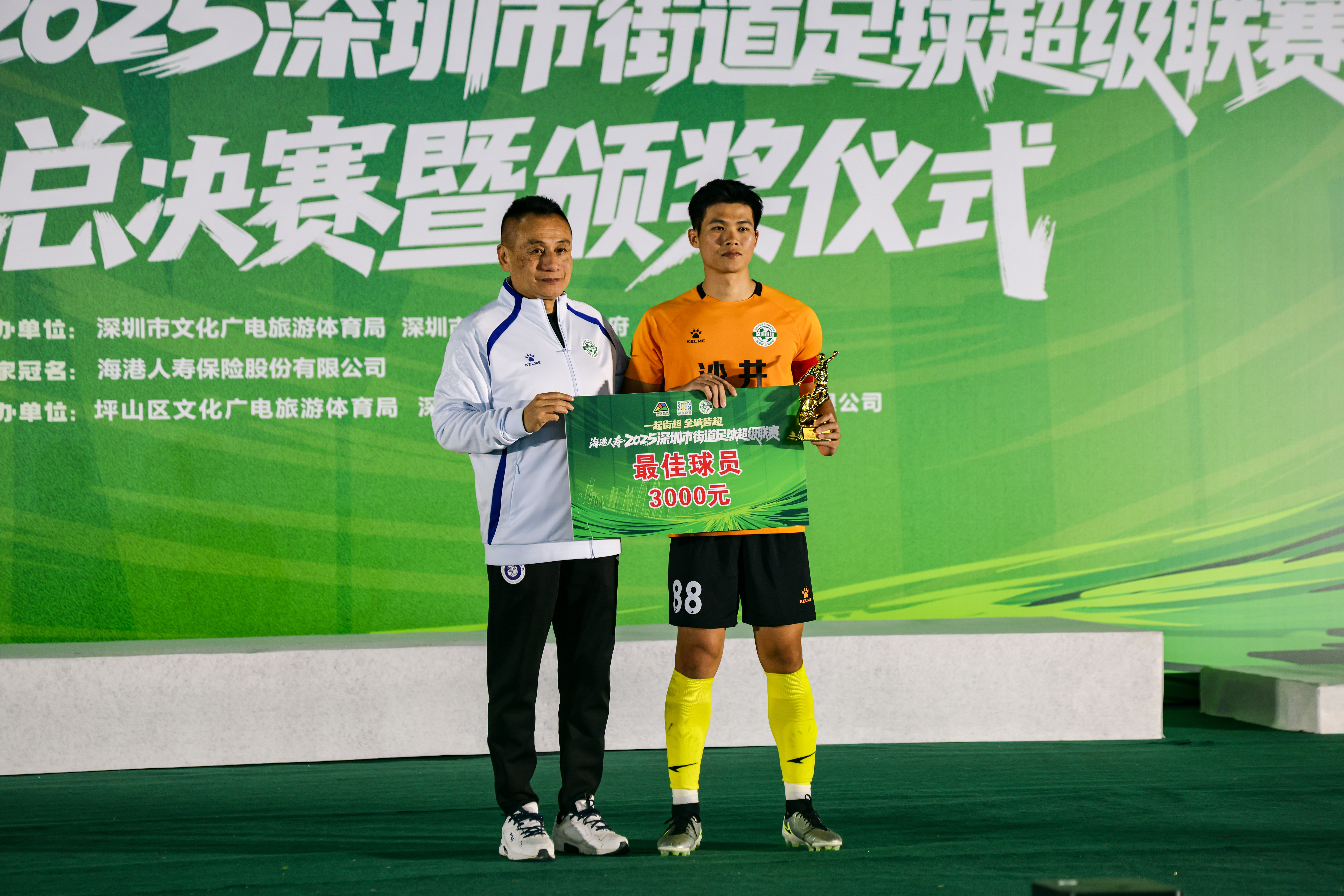 12月6日,宝安壆岗足球俱乐部足球场人声鼎沸。海港人寿·2025深圳市街道足球超级联赛(简称“深圳街超”)决赛进行至最后时刻,沙井街道队长林坚维攻入绝杀球,让现场变成庆祝的海洋。1比0,沙井街道战胜了“超级黑马”新安街道,夺得本届赛事冠军。